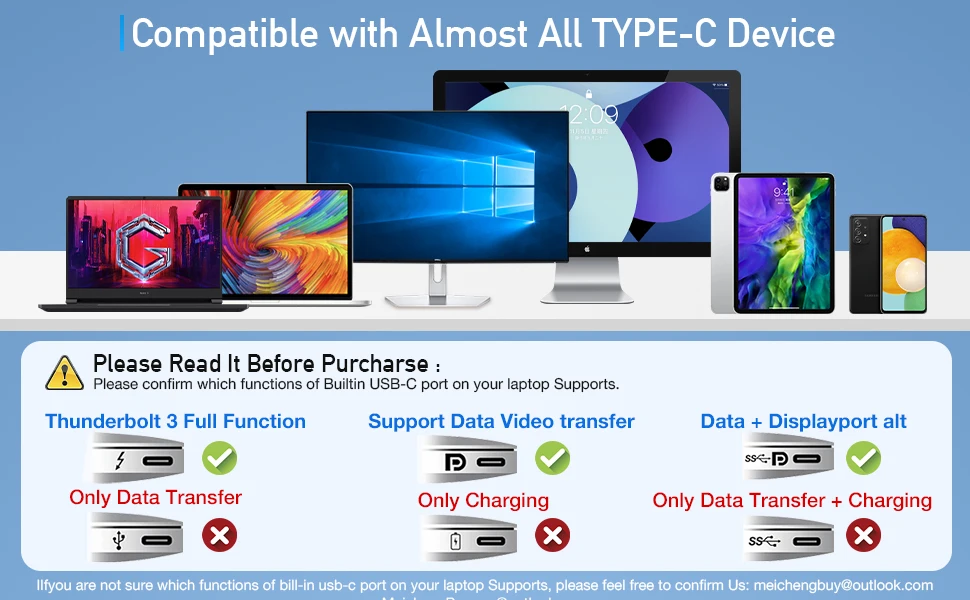 Por favor, asegúrese de que su computadora portátil cuente con una función completa (soporte de carga, transferencia de datos y salida de video), puerto de 2 o 3 puertos Thunderbolt. Si no está seguro, consulte con nosotros.