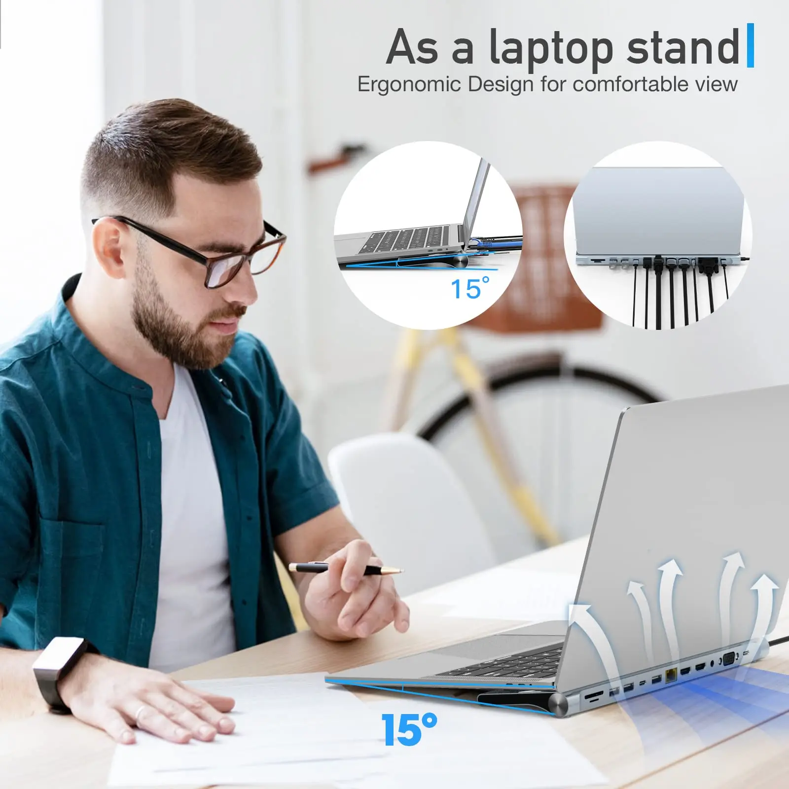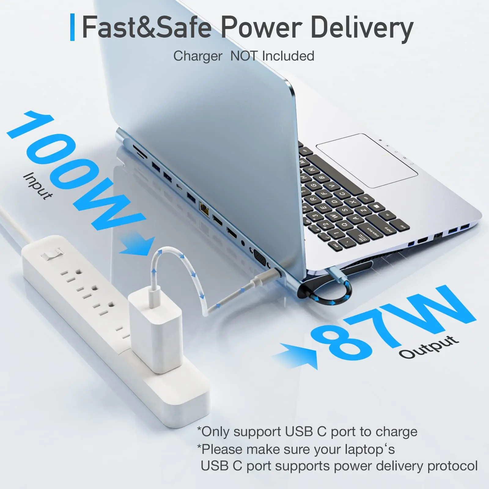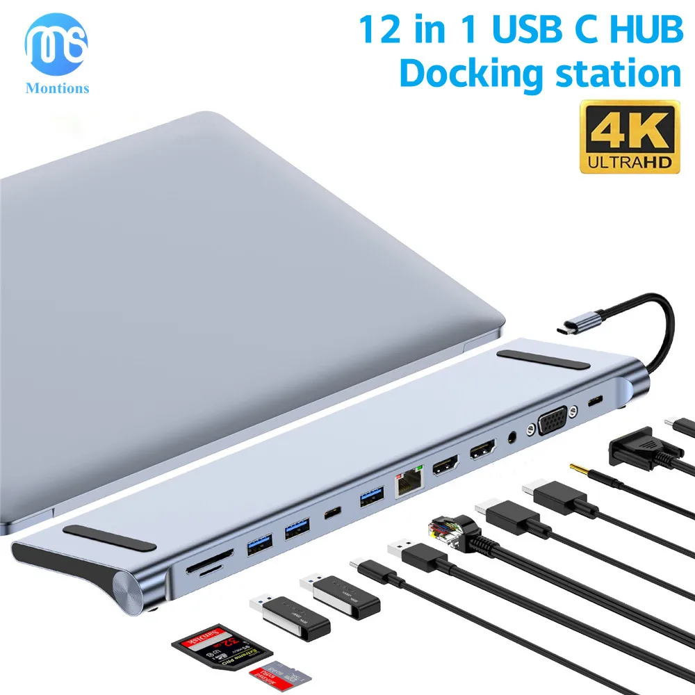 Comprar Concentrador de red USB 12 en 1, adaptador USB C con 4K, HDMI, VGA, USB-C, Thunderbolt, 3 Gigabit, Ethernet, Audio SD/TF para MacBook, estación de acoplamiento
