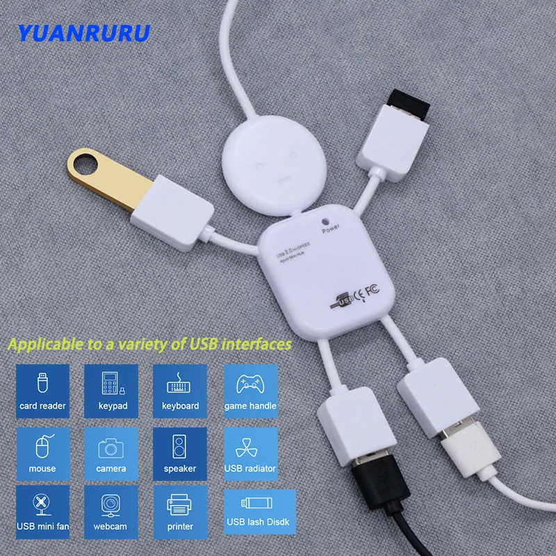 Splitter USB Hub 2,0 Multi USB Splitter Hub Use adaptador de corriente 4 puertos Expansor múltiple 2,0 USB Hub para PC
