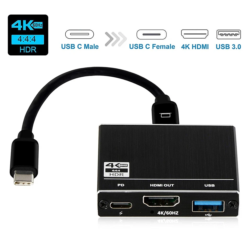 Comprar Concentrador de red USB 2024 tipo C, 3 en 1, 3,1 a HDMI, 4K @ 60Hz, puerto USB 3,0, 100W, USB-C de entrega de energía portátil para Nintendo Switch