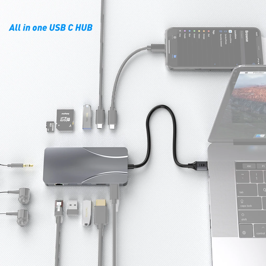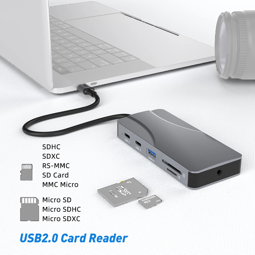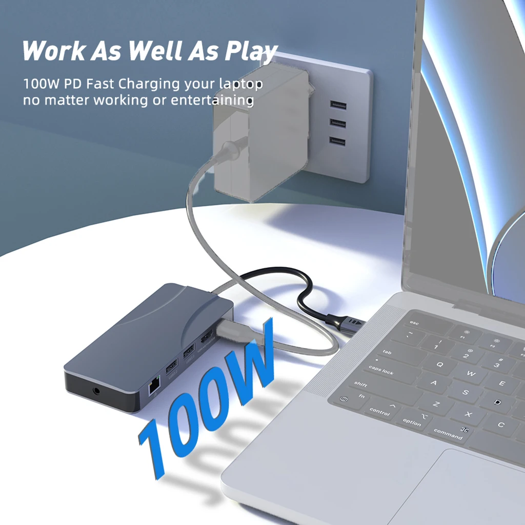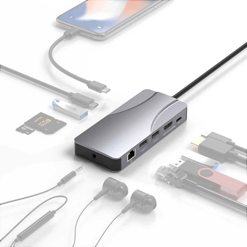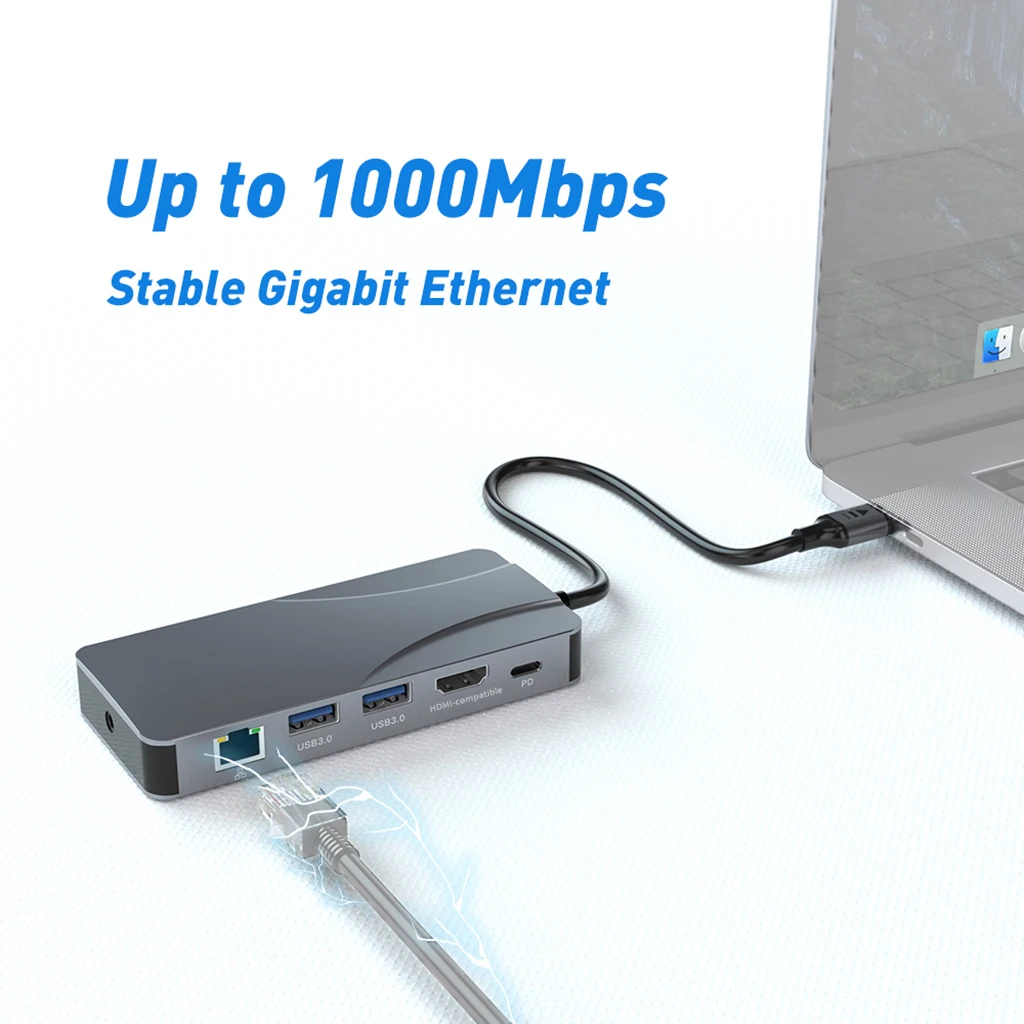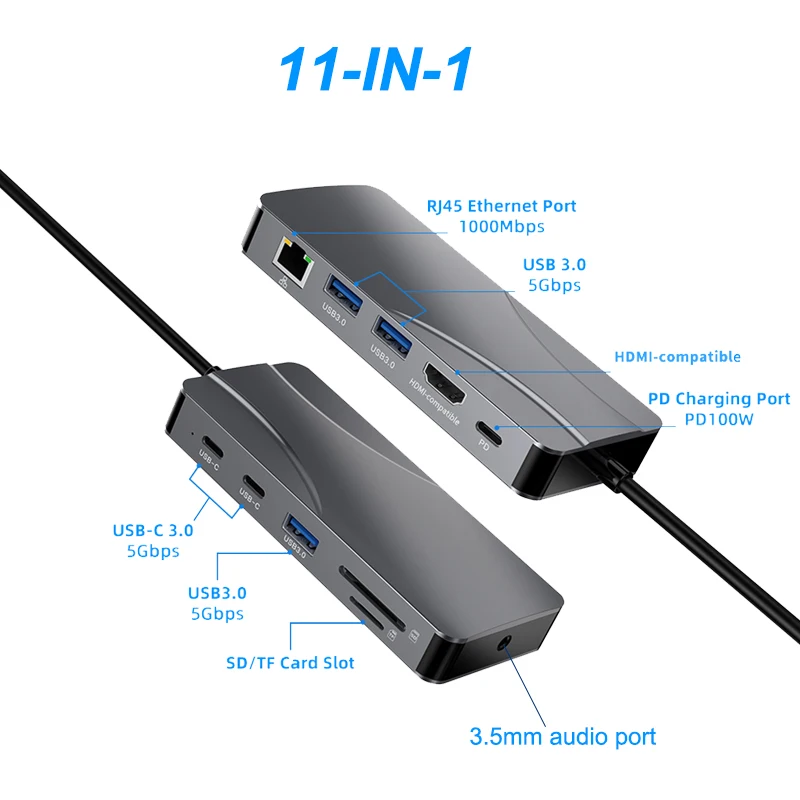 Comprar Concentrador de red USB 3,0 11 en 1 a 4K 60Hz, adaptador Compatible con HDMI, 1000Mbps, RJ45, Ethernet, PD100W, lector de tarjetas SD/TF, estación de acoplamiento tipo C