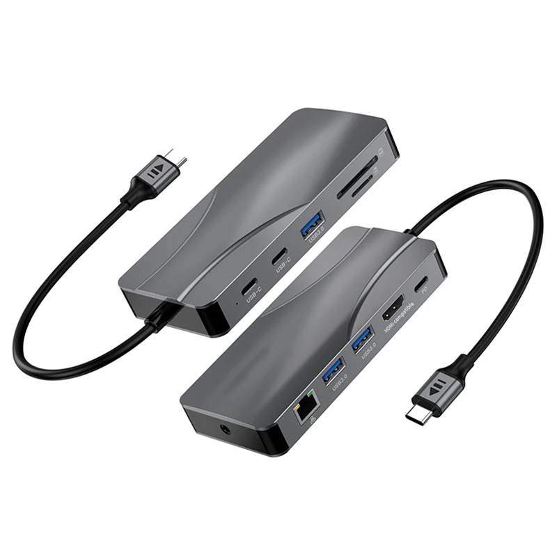 Comprar Concentrador de red USB 3,0 11 en 1 a 4K 60Hz, adaptador Compatible con HDMI, 1000Mbps, RJ45, Ethernet, PD100W, lector de tarjetas SD/TF, estación de acoplamiento tipo C