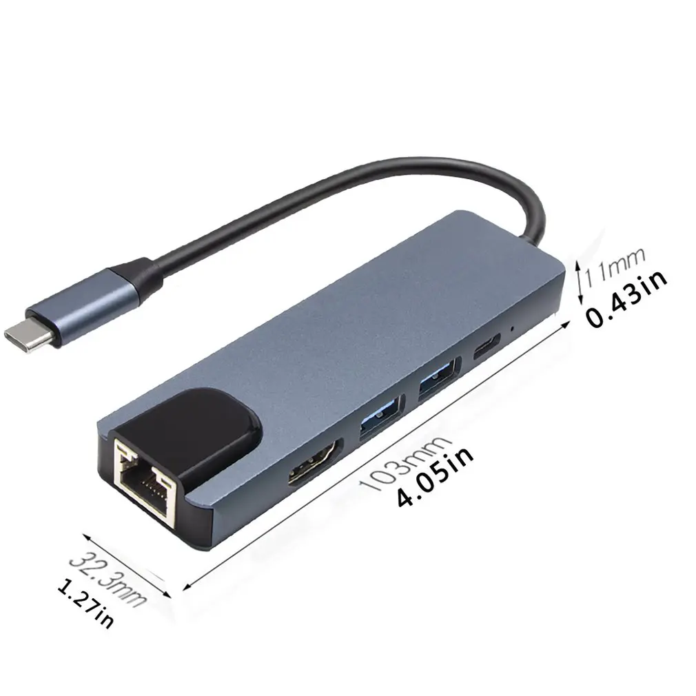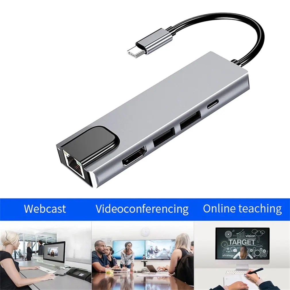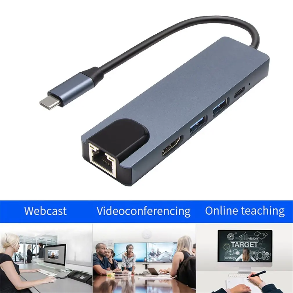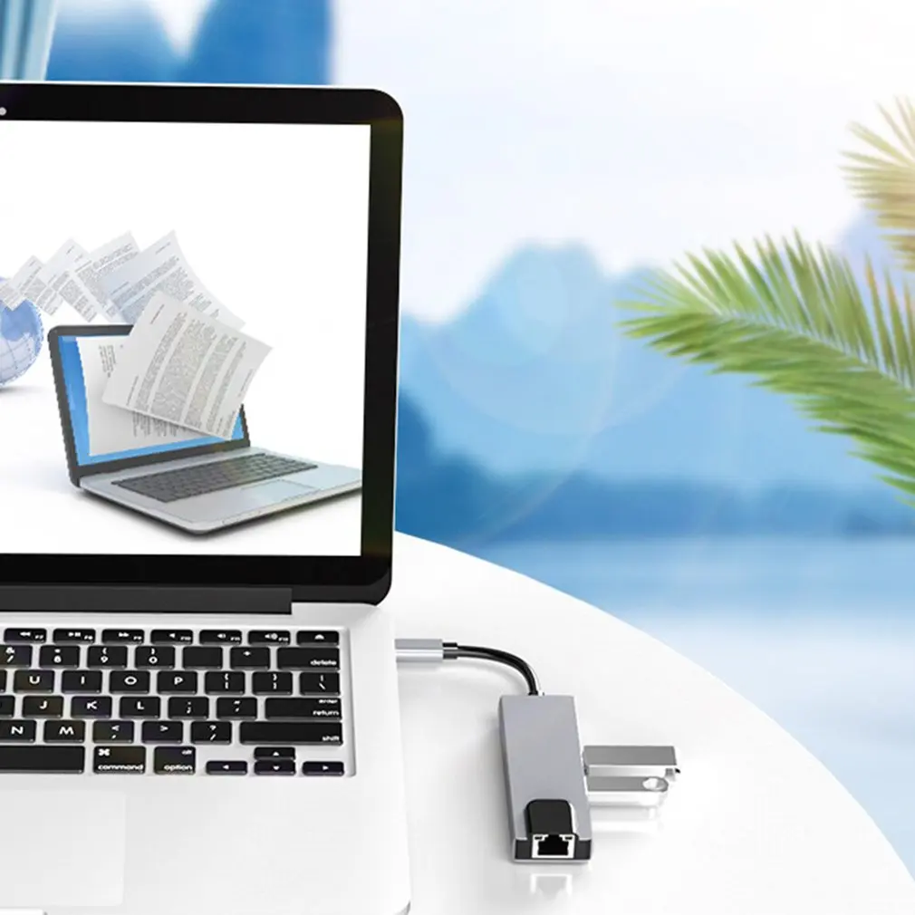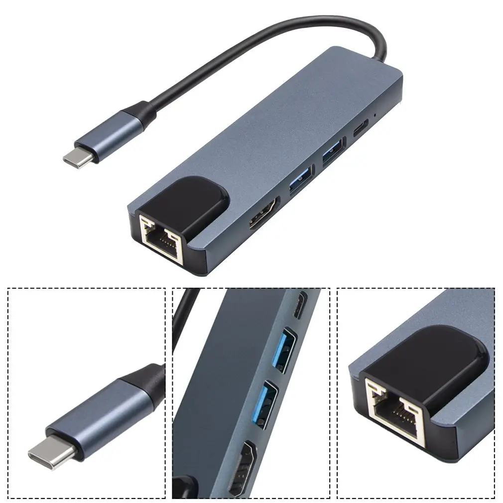 Comprar Concentrador de red USB 3,0 a tipo C, estación de acoplamiento RJ45 para ordenador portátil Macbook Pro, Compatible con HDMI, 4K