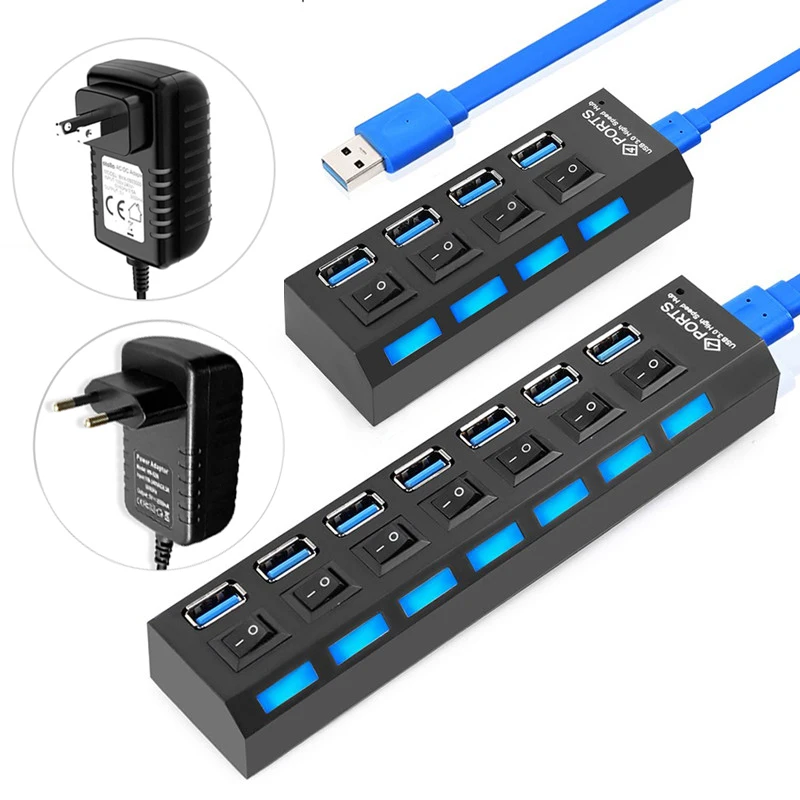 HUB USB 3,0 divisor de concentrador USB 3 0 HUB multipuerto con adaptador de corriente múltiple de 3 habitaciones con interruptor para accesorios de ordenador PC