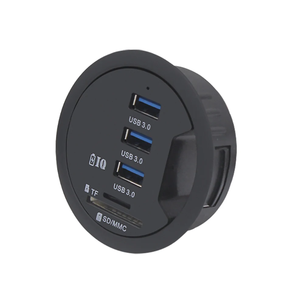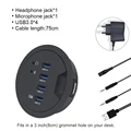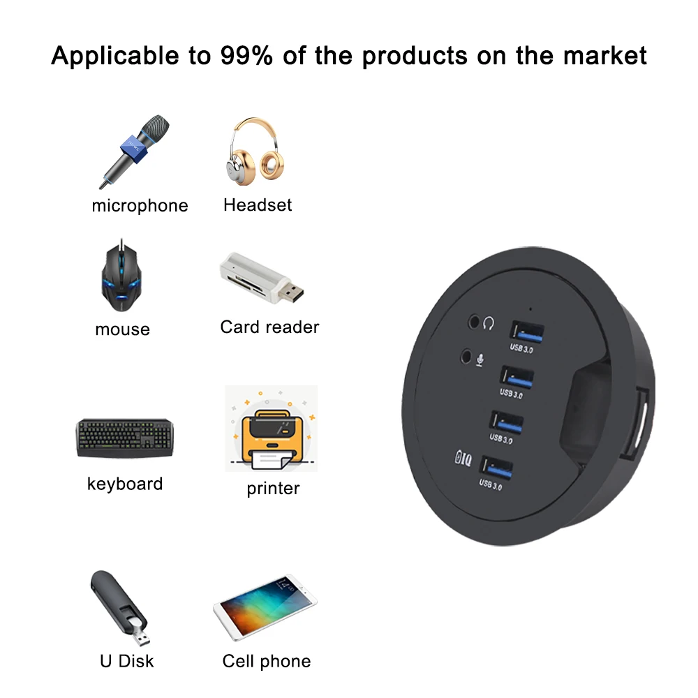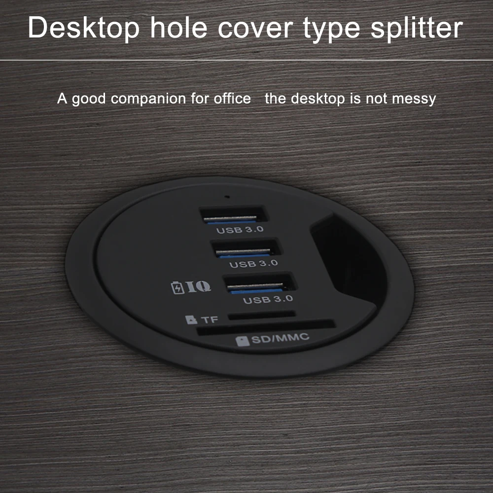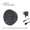 Hub USB 3,0 USB 2,0 Hub Ojal de escritorio Tipo C Puerto Hub Audio con SD/TF 3/4 Puerto de montaje en escritorio con adaptador de corriente 5V 2A