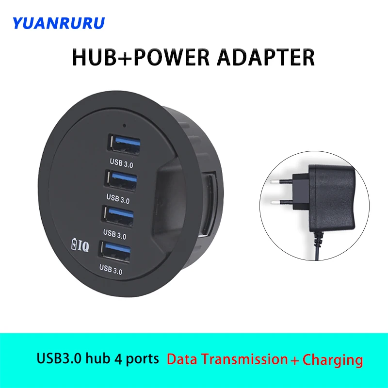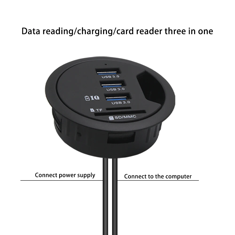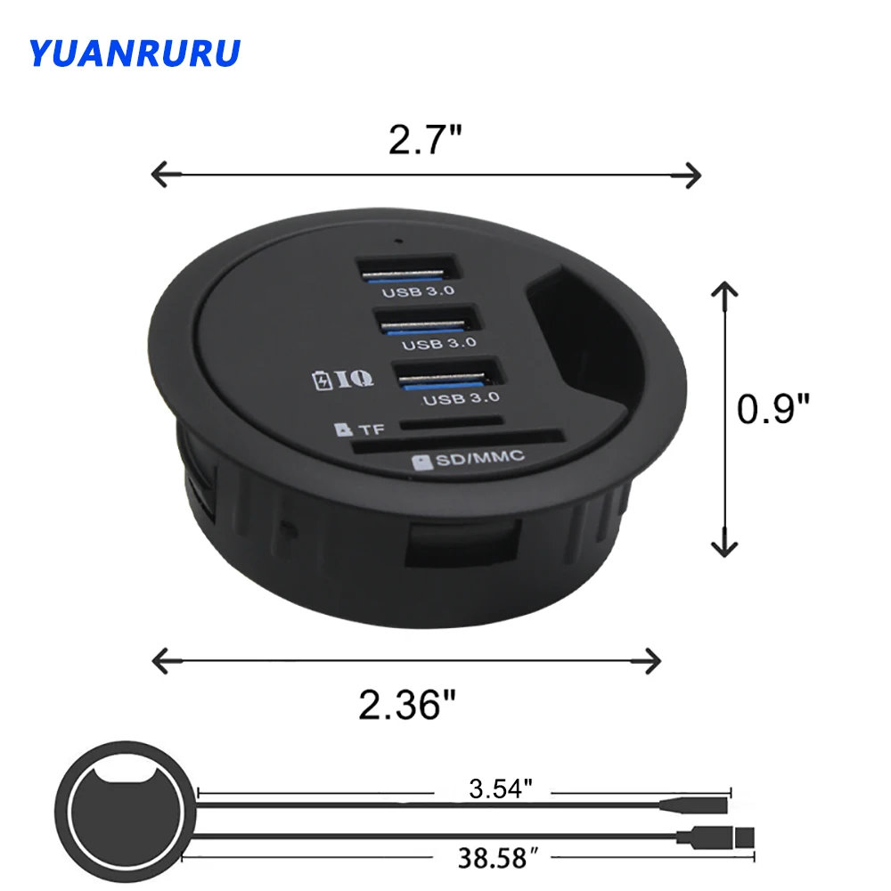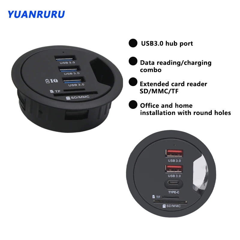 Hub USB 3,0 USB 2,0 Hub Ojal de escritorio Tipo C Puerto Hub Audio con SD/TF 3/4 Puerto de montaje en escritorio con adaptador de corriente 5V 2A