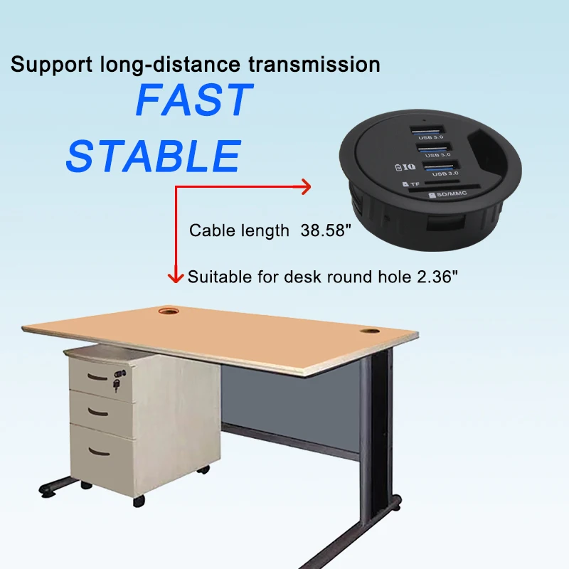 3. Extienda la interfaz USB desde el chasis al escritorio, para que pueda conectar cualquier dispositivo USB en el escritorio y cargar iPad/tableta/teléfonos inteligentes. (El HUB USB2.0 no admite carga)