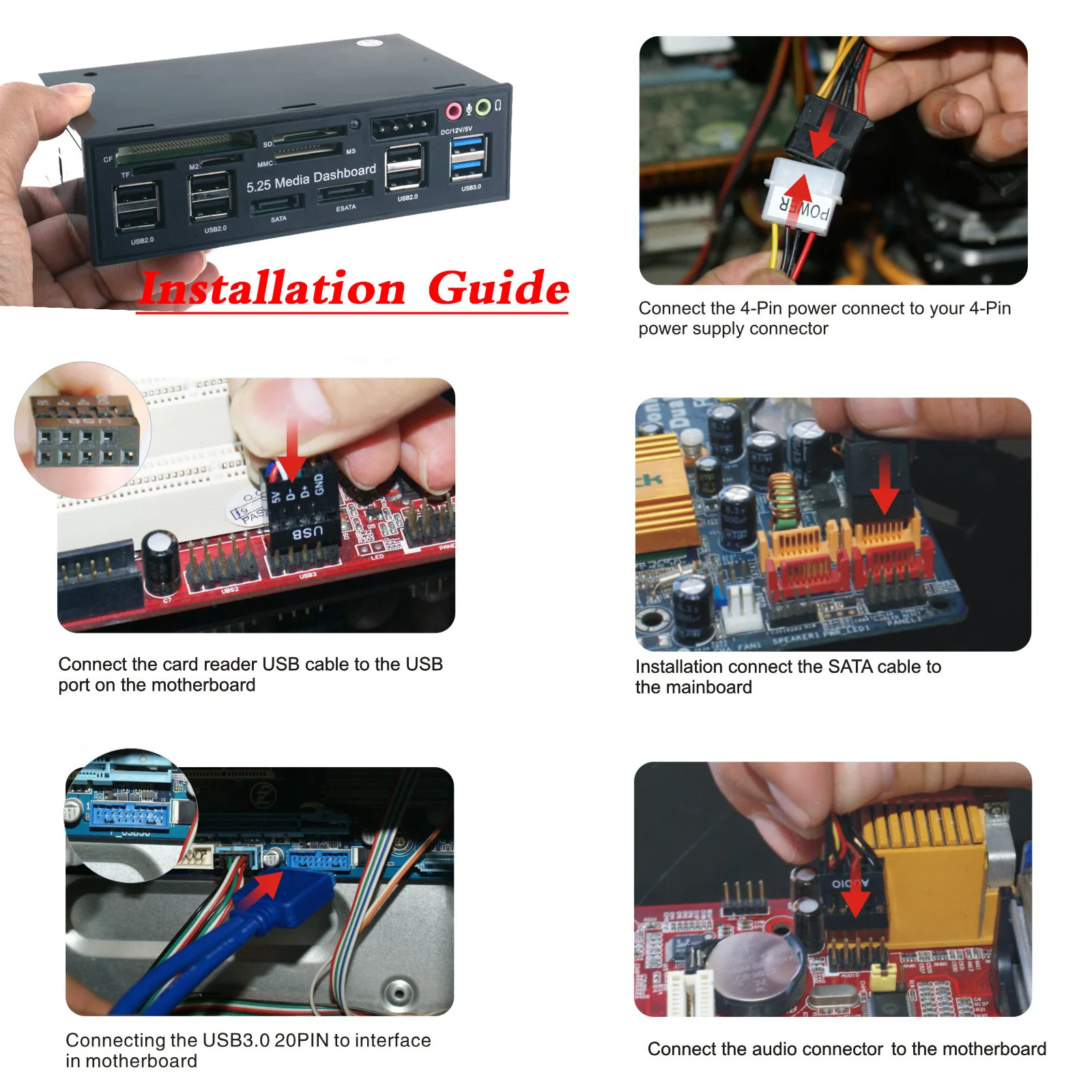 1*5,25 "SATA interno e-SATA Dual USB 3,0 seis USB 2,0 lector de tarjetas cinco en uno Panel frontal multifunción tablero multimedia