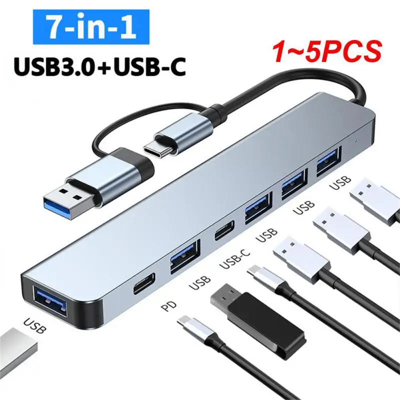 1 ~ 5 piezas 7 puertos 2 en 1 USB 3,0 HUB Tipo-c Adaptador USB 2,0 Transmisión de alta velocidad Multipuerto USB Splitter Expansor para PC