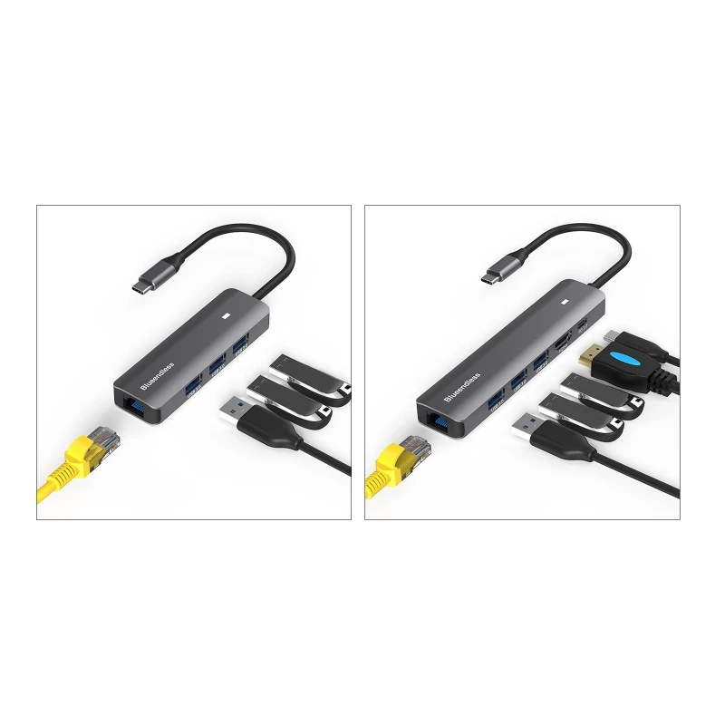 Comprar Concentrador de red USB 3,0 para ordenador portátil, estación de acoplamiento Compatible con HDMI, Lan Gigabit, PD, 100W, 5Gbps, tipo C