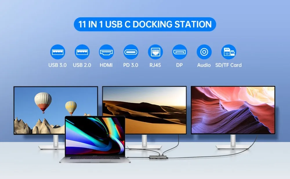 Comprar Concentrador de red USB 3,0 para ordenador portátil, estación de acoplamiento para MacBook, 11 en 1, compatible con HDMI, RJ45