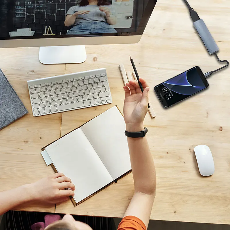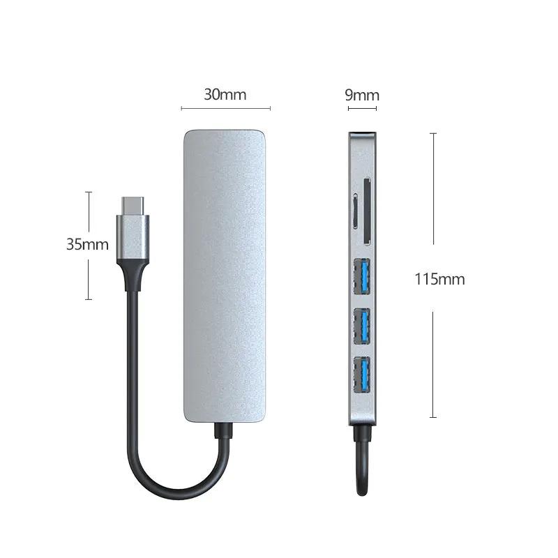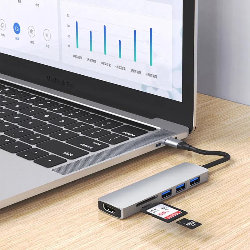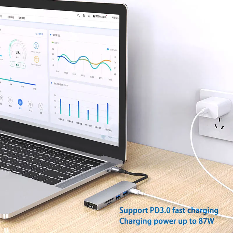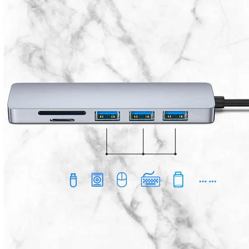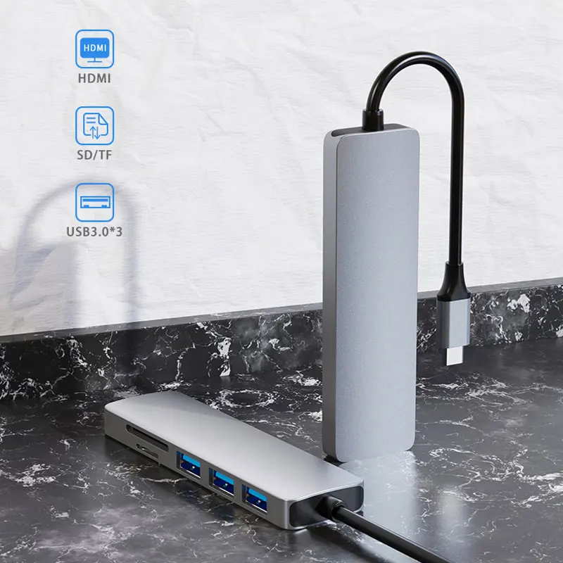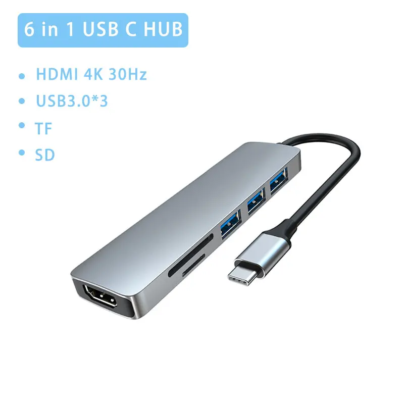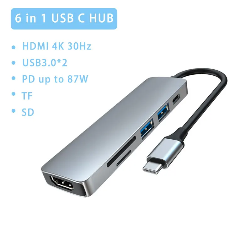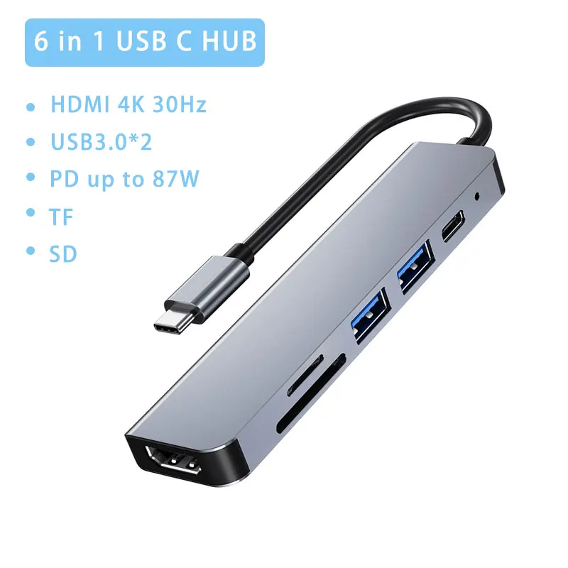Comprar Concentrador de red USB C 6 en 1 a HDMI con carga PD, USB 3,0, lector de tarjetas SD TF, divisor USB para Macbook Pro, Samsung Galaxy, HUB USB 3,0