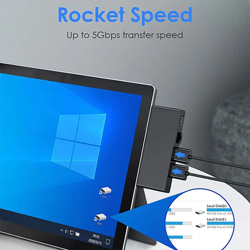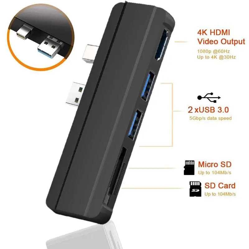 Comprar Concentrador de red USB C para Microsoft Surface Pro 4/5/6, base adaptadora con multipuerto, USB 3,1, TF/SD a HDMI, divisor 4K, conectar TV