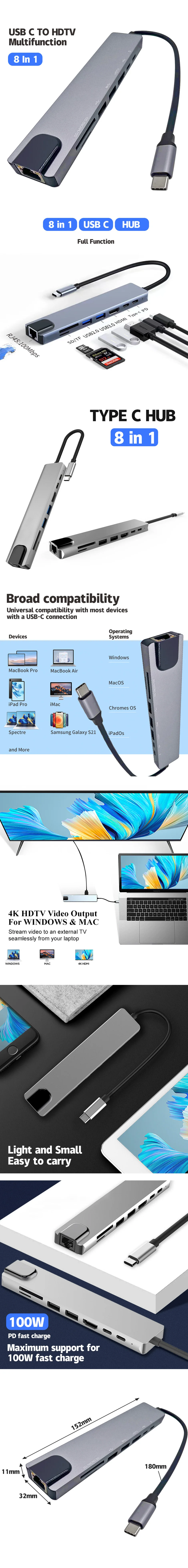 Expansión masiva 8-En-1: satisfaga sus necesidades de expansión para carga, transferencia de datos, Ethernet, salida HDMI 4K y mouse al mismo tiempo, haciendo que su computadora tenga más funciones, y trabajar de manera más eficiente.