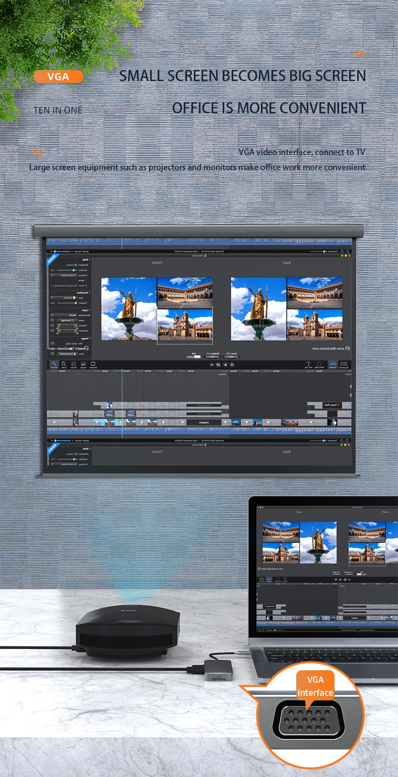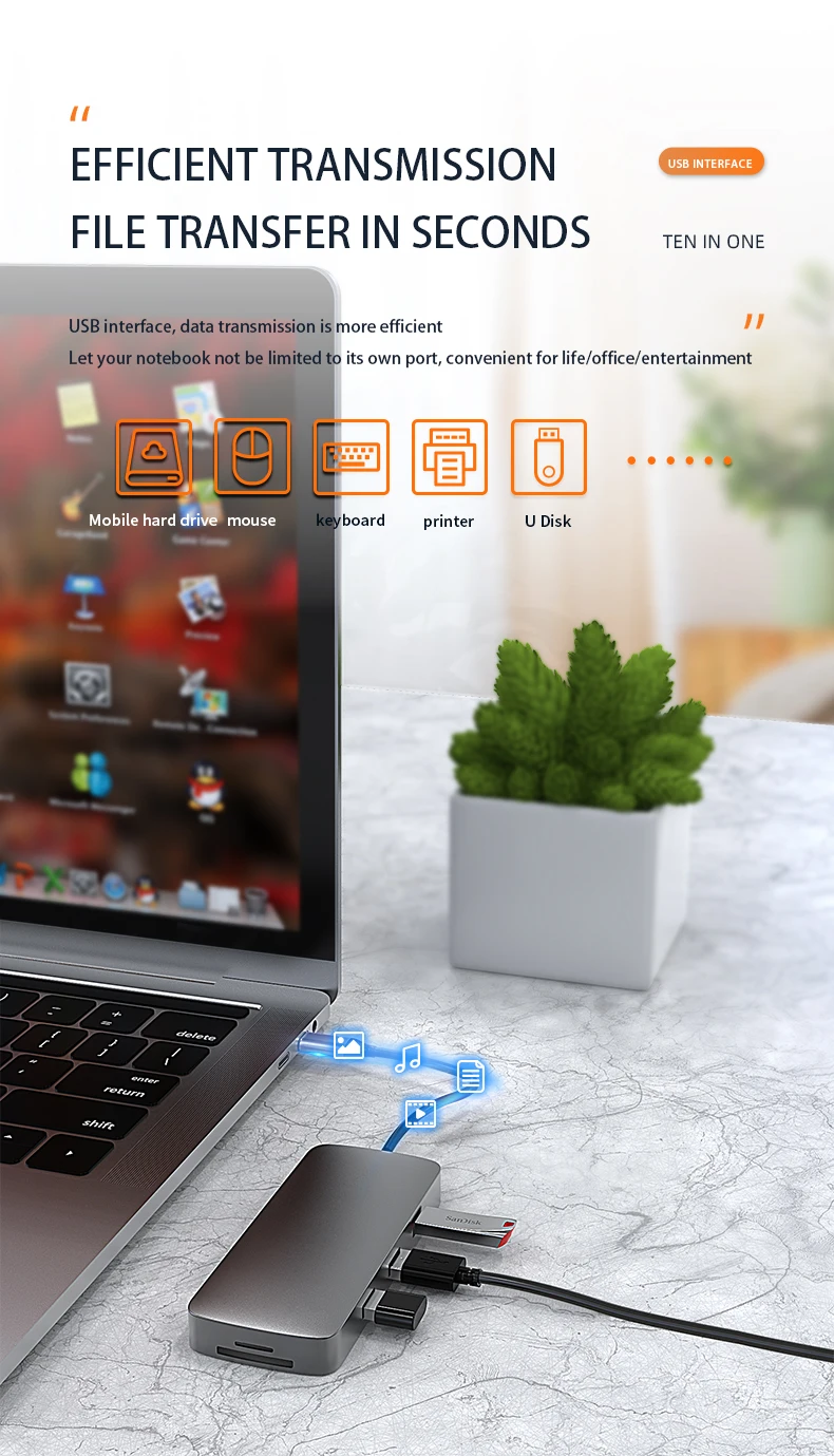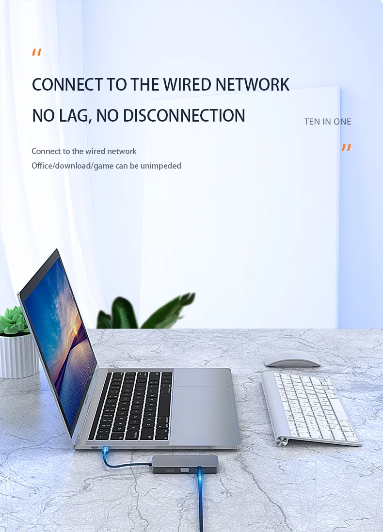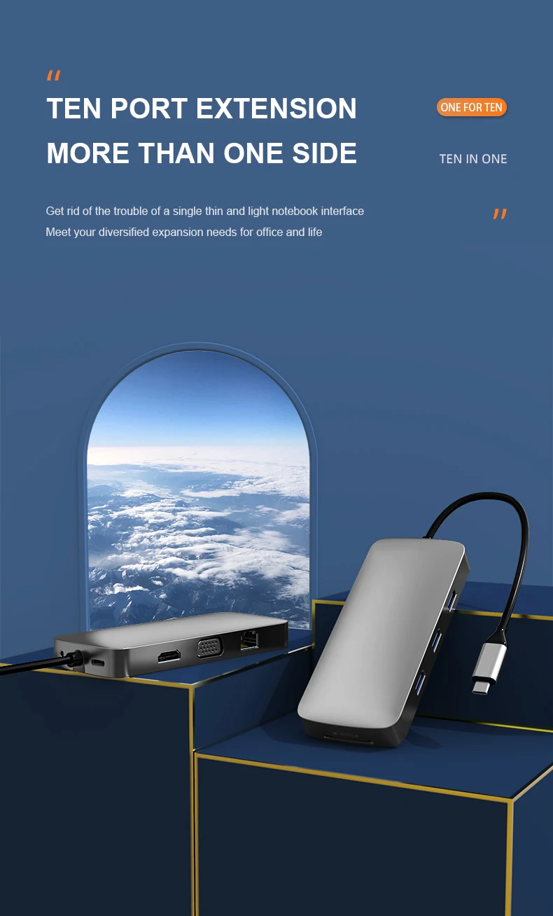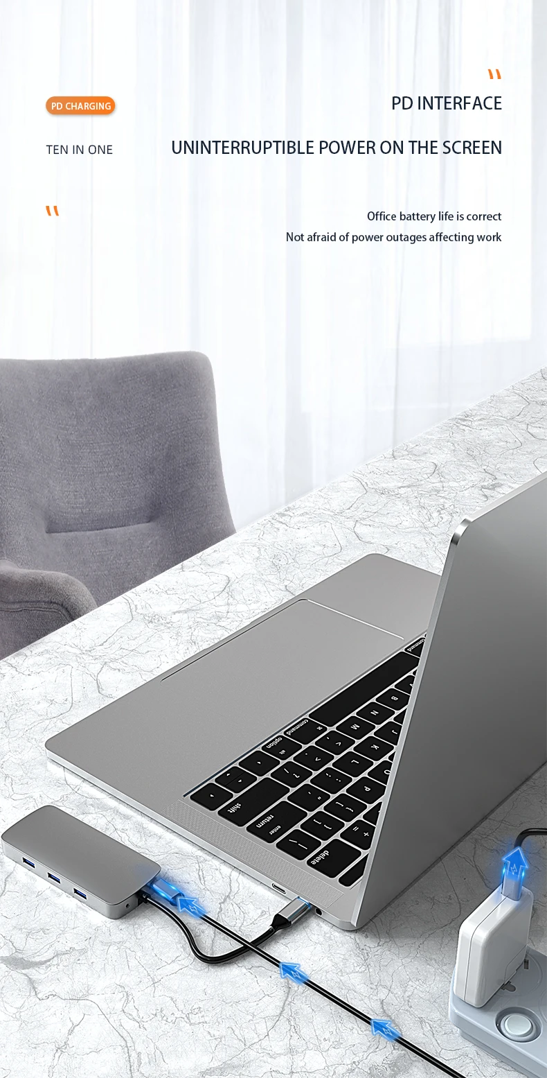 USB C HUB tipo C a 4K HDMI compatible con RJ45 VGA USB SD/TD lector de tarjetas PD carga rápida 10 en 1 estación de acoplamiento para Macbook Pro