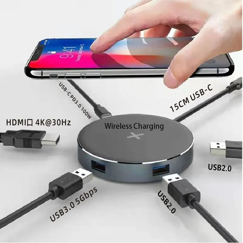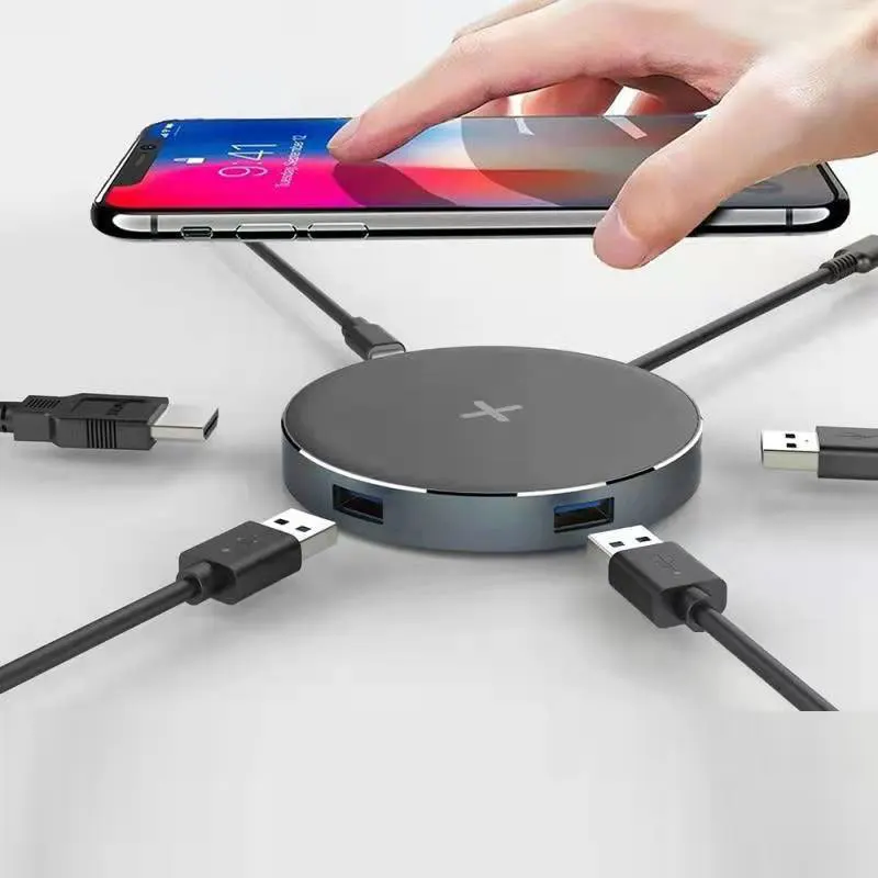 Concentrador de red USB tipo C a USB 3,0, adaptador HDMI para MacBook Pro, Huawei Mate, cargador inalámbrico de teléfono, concentrador USB para ordenador portátil