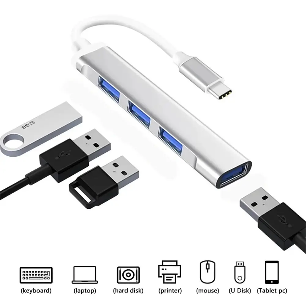 Comprar Concentrador de red USB tipo C, adaptador divisor de aleación de aluminio OTG para Samsung Macbook Pro Air PC Notebook, Multi 4 puertos 4 en 1