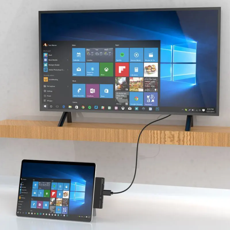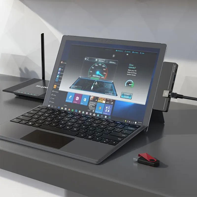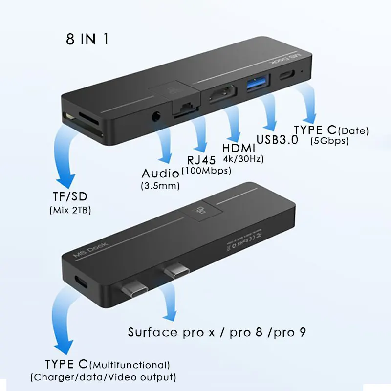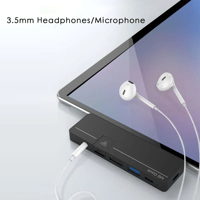 Comprar Concentrador de red USB tipo C para Surface Pro x/Pro 8 /Pro 9, HDMI 4K con Thunderbolt 3, USB 3,0, RJ45, carga PD, ranura de Audio TF/SD
