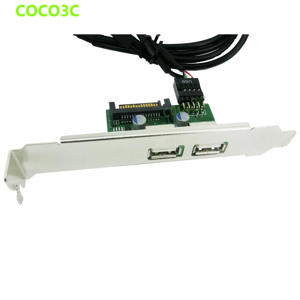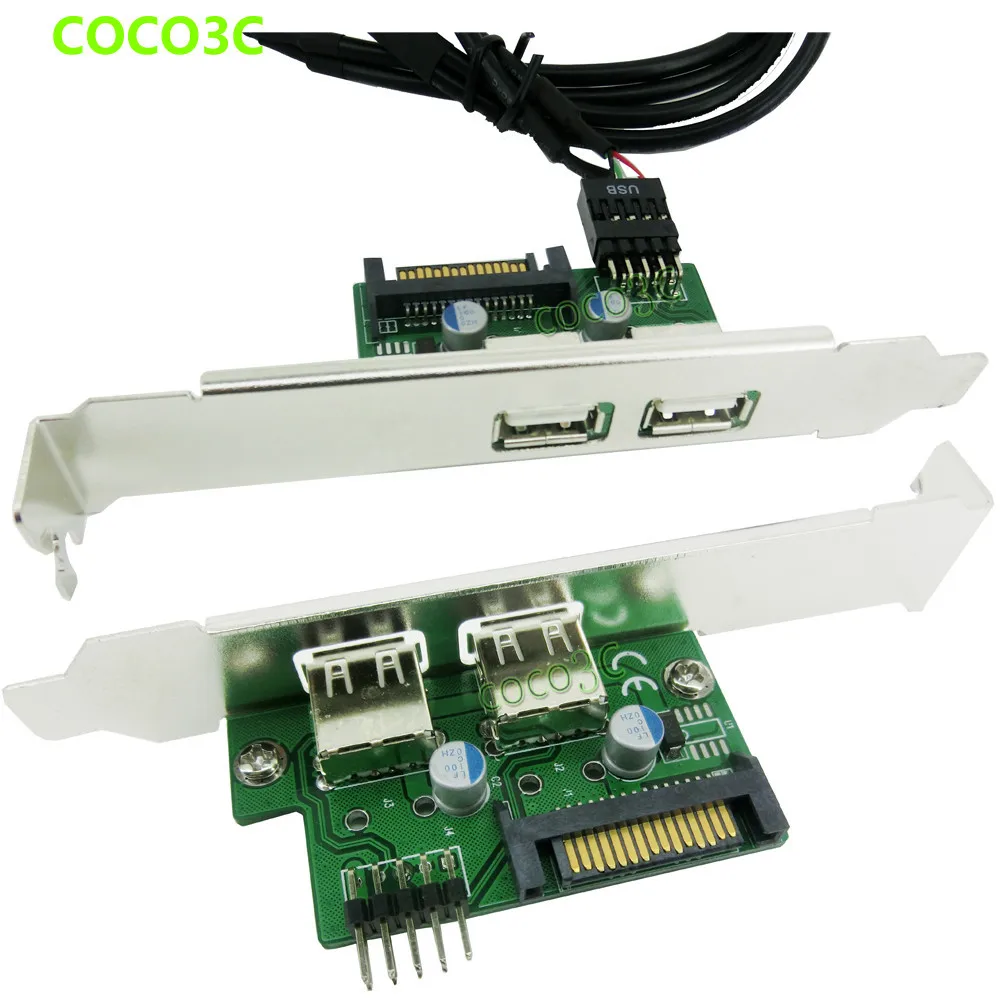 Comprar Concentrador USB de 9 pines, cabezal de 2,0 pines a tarjeta Convertidora de puerto Dual USB 2,0 + cable de pin hembra de 15 Pines, Soporte SATA power PCI express