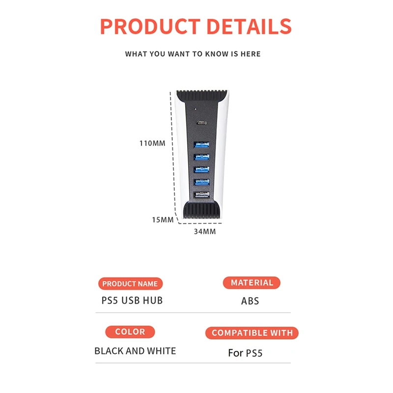 Comprar Concentrador USB divisor 6 en 1, 5 puertos USB A + 1, adaptador de alta velocidad para consola de juegos PS5