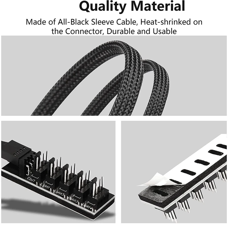Compatibilidad: el concentrador del ventilador es compatible con todas las CPU de 12V y viene con conexiones de 4 o 3 pines. El cable trenzado de nailon con cubierta negra es más duradero, lo que hace que el interior de la carcasa del PC se vea limpio y ordenado.