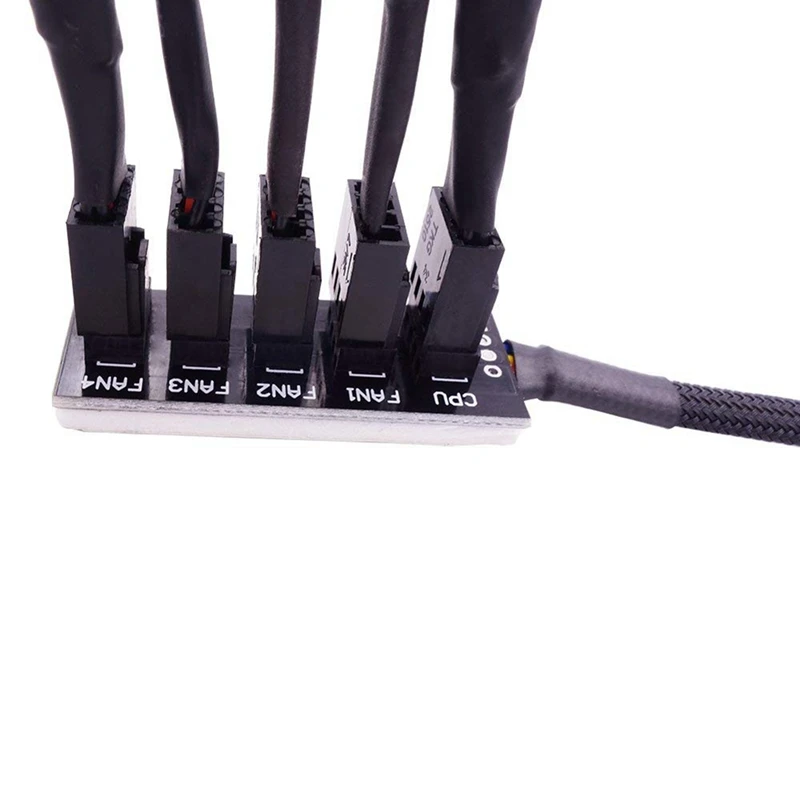 5 puertos con 4 pines: PWM Hub tiene un total de 5 puertos. 1 para la conexión del sistema principal de 12V, para el ventilador de la carcasa 4.