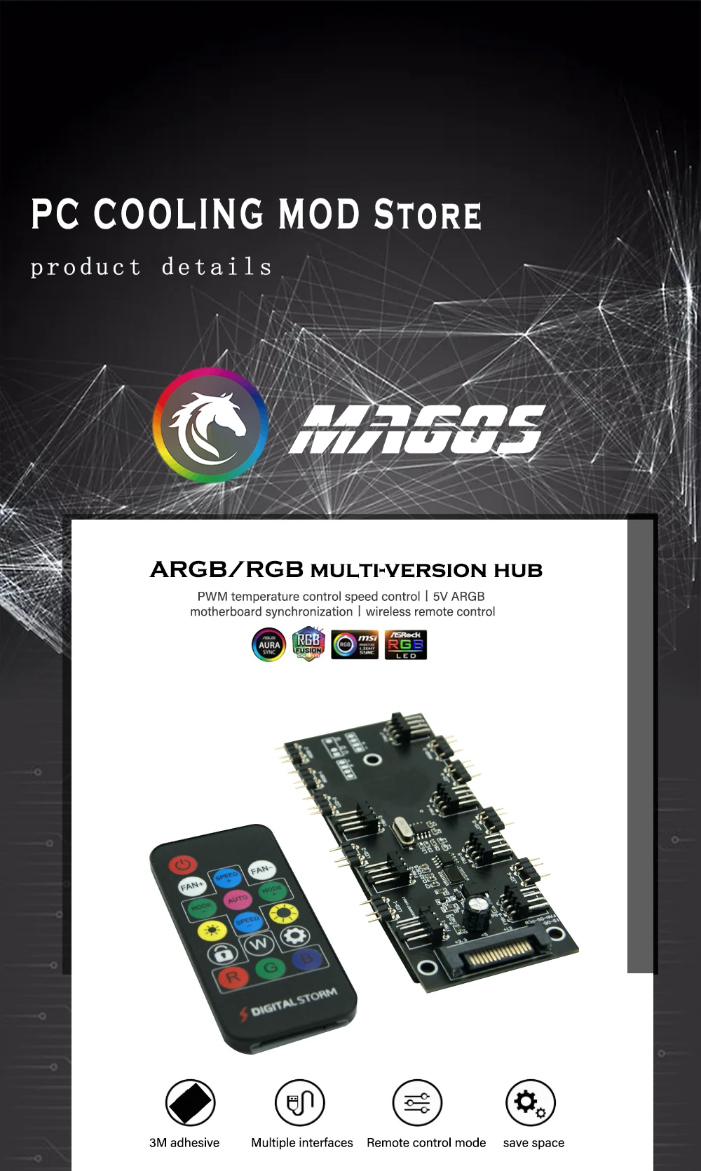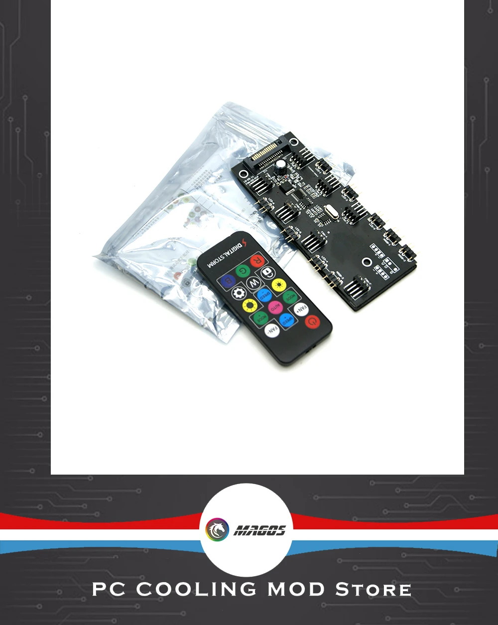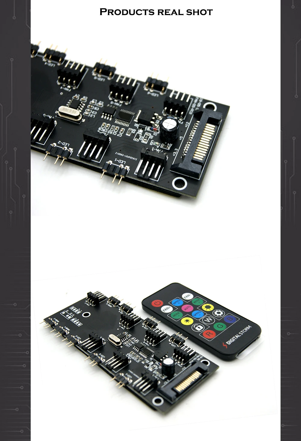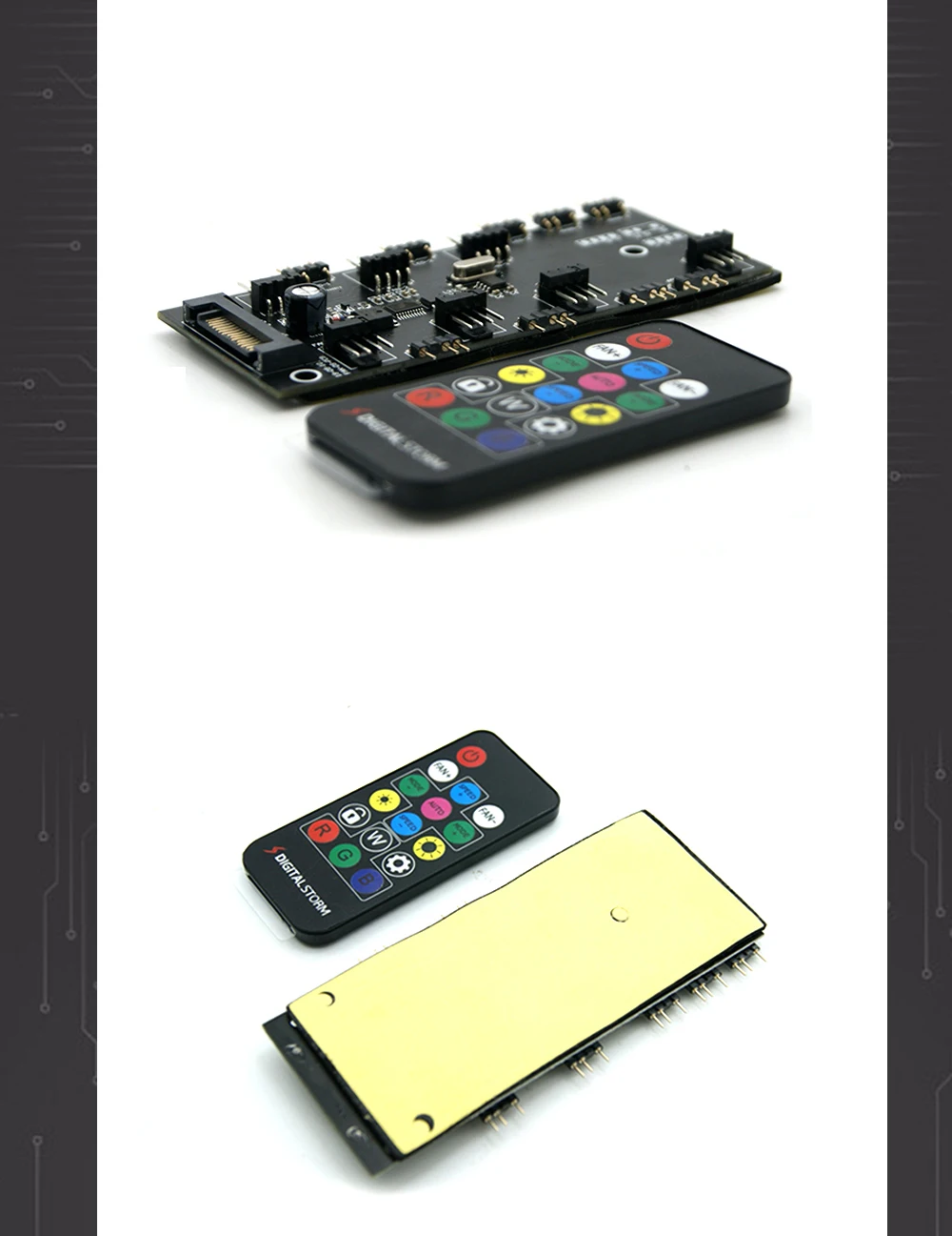 2. El control remoto se puede ajustar en 6 velocidades sin necesidad de conectarse a la placa base del ordenador. La parte posterior de la placa PCB del cubo está provista de un adhesivo de 3M, que es conveniente para pegar en un lugar plano. También con 3 agujeros fijos de filigrana