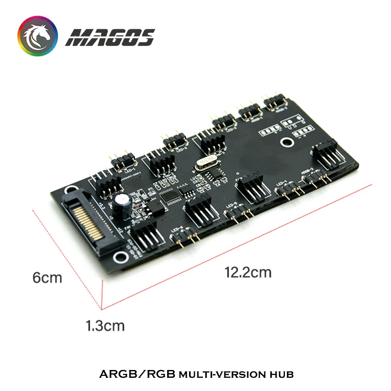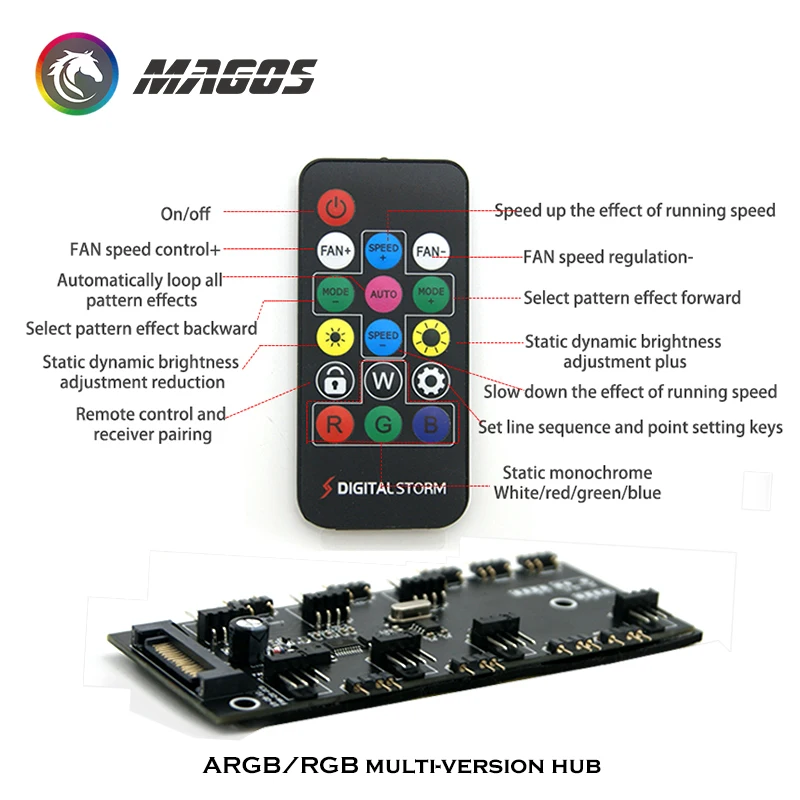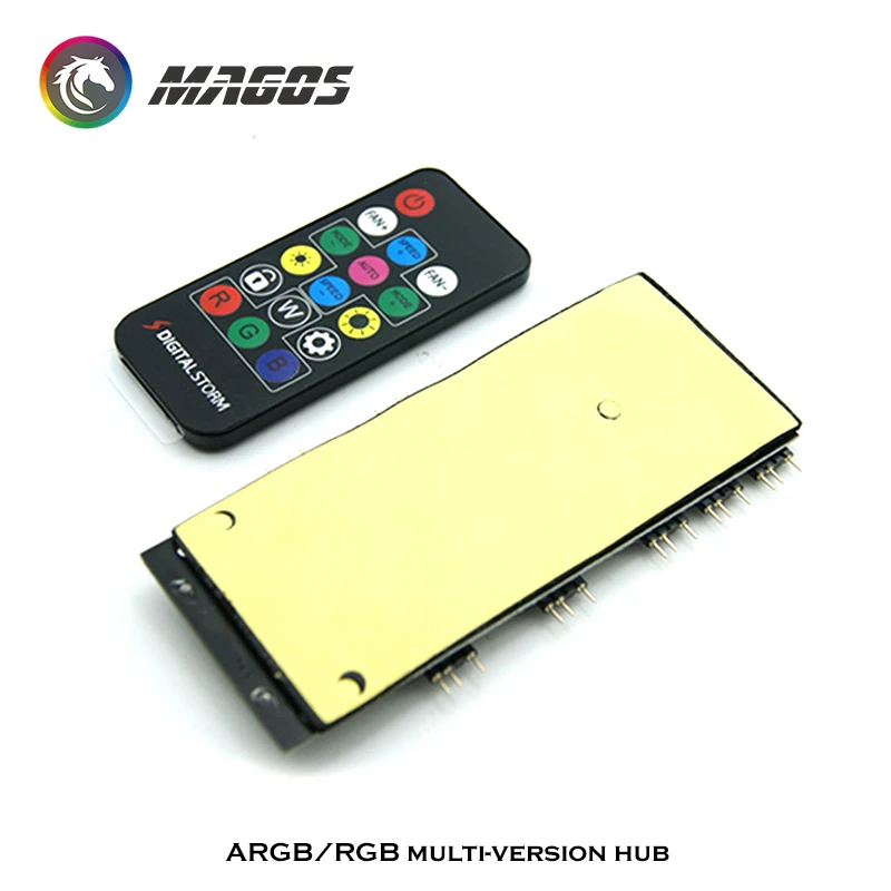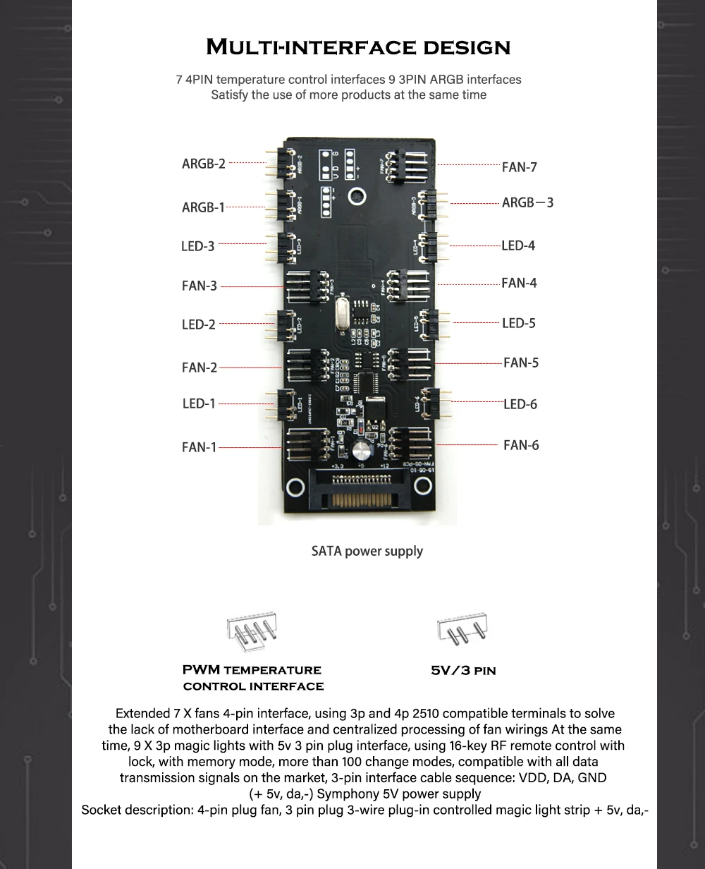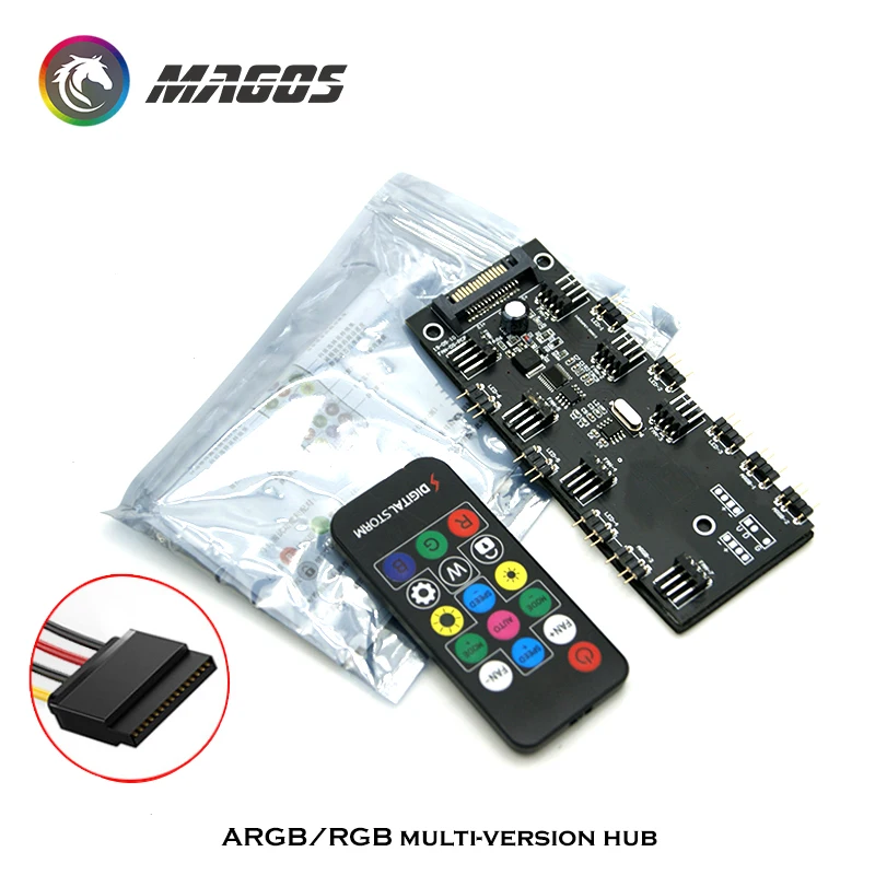 Comprar Concentrador de ventilador RGB PWM, controlador 2 en 1, 5V, 3 pines, A-RGB + 4 pines, 6 engranajes/Symphony, mando a distancia RF de 16 teclas, fuente de alimentación SATA