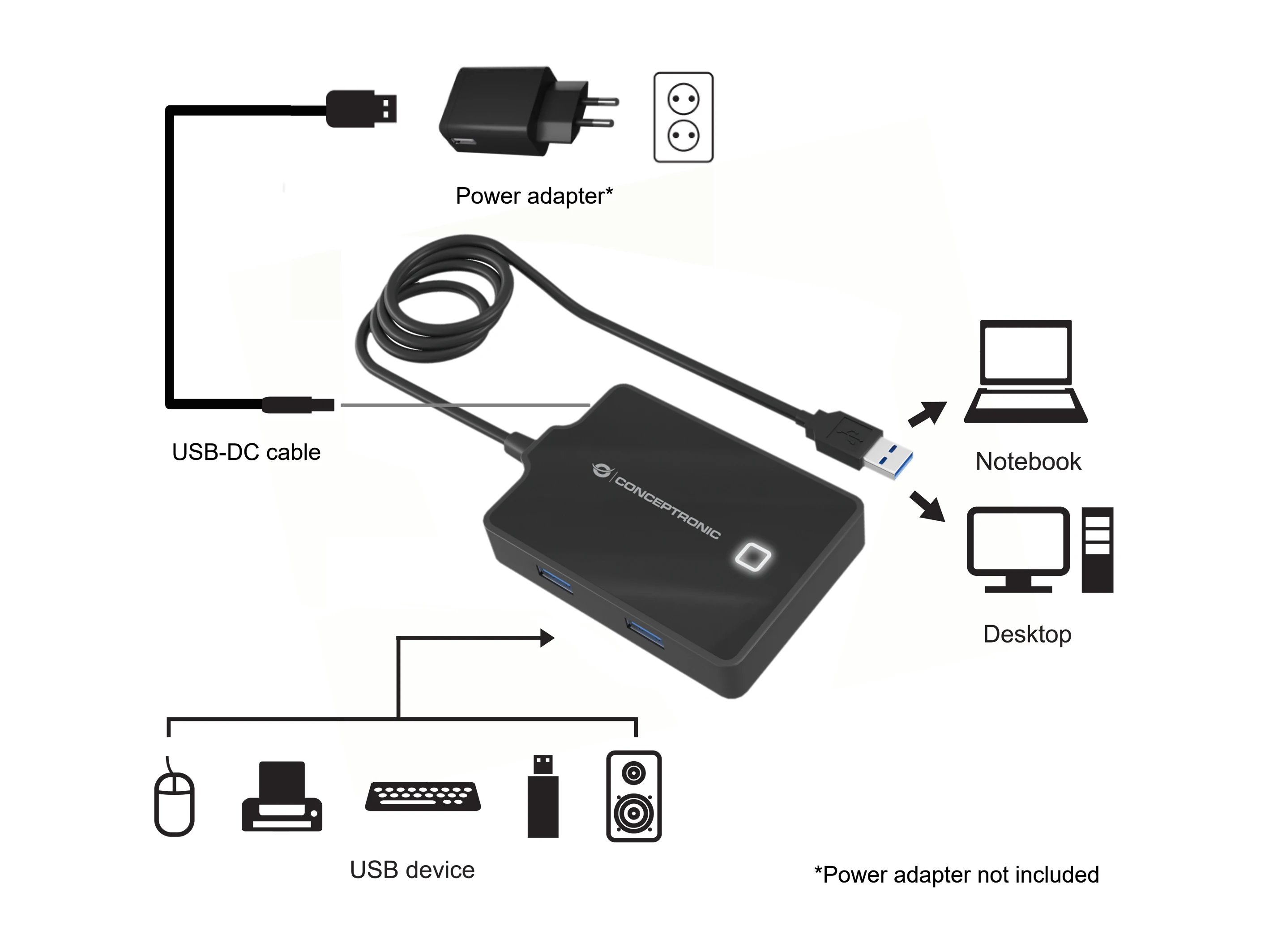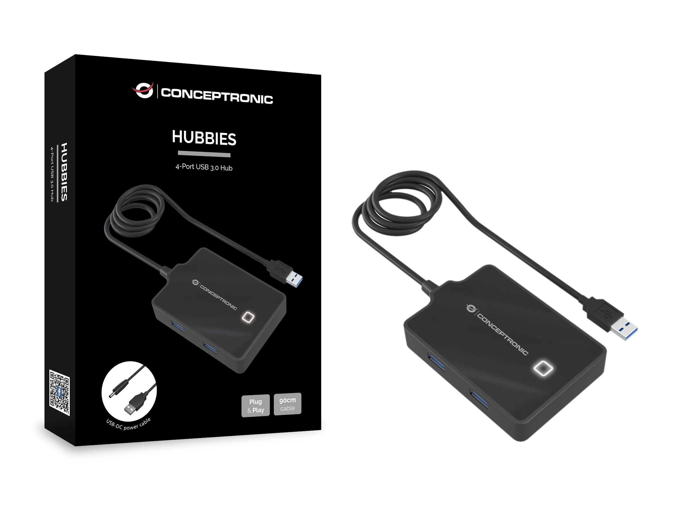 Conceptronic HUBBIES11B. Interfaz de host: USB 3.2 Gen 1 (3.1 Gen 1) Type-A. Color del producto: Negro, Interfaces de concentradores: USB 3.2 Gen 1 (3.1 Gen 1) Type-A, País de origen: China. Ancho: 87 mm, Profundidad: 55 mm, Altura: 15 mm. Cantidad por paquete: 1 pieza(s), Ancho del paquete: 107 mm, Profundidad del paquete: 18 mm. Cables incluidos: USB