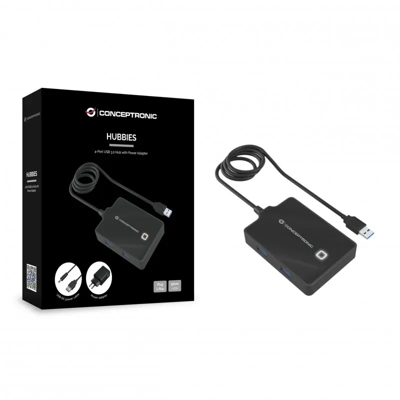 /Comprar Conceptronic HUBBIES11BP HUB 4 Puertos USB 3.0 + Adaptador de Alimentación