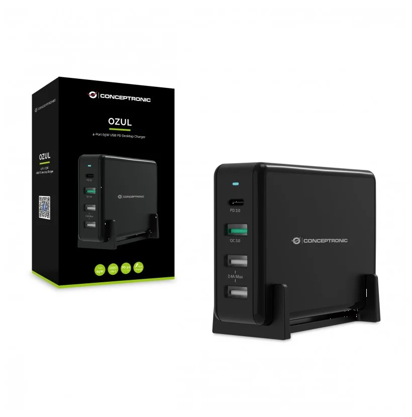 /Comprar Conceptronic OZUL01B Cargador de Escritorio 65W 2xUSB 5V/2.4A + USB Quick Charge 3.0 + USB-C PD 3.0