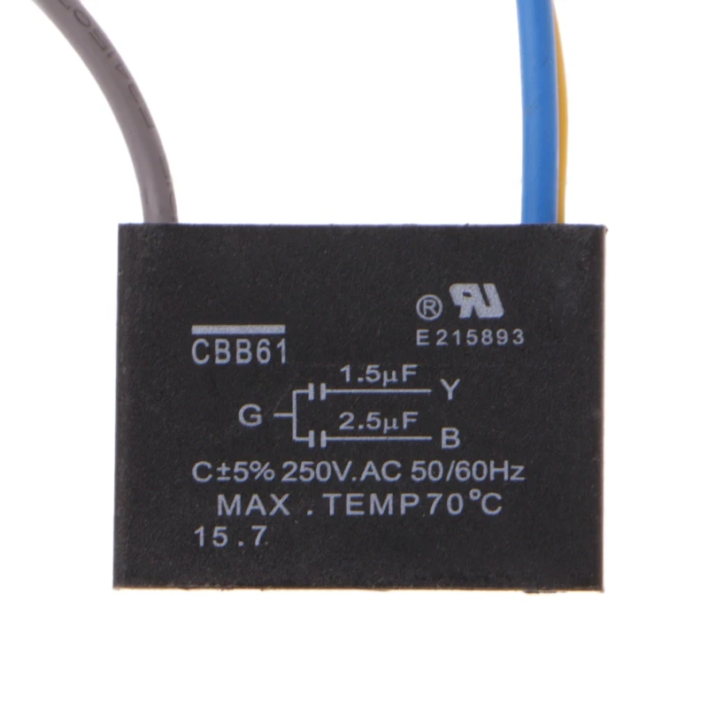 Comprar Condensador de arranque para ventilador de techo, condensador eléctrico de corriente CBB61 1,5 uF + 2,5 uF, 3 cables AC 250V 50/60Hz