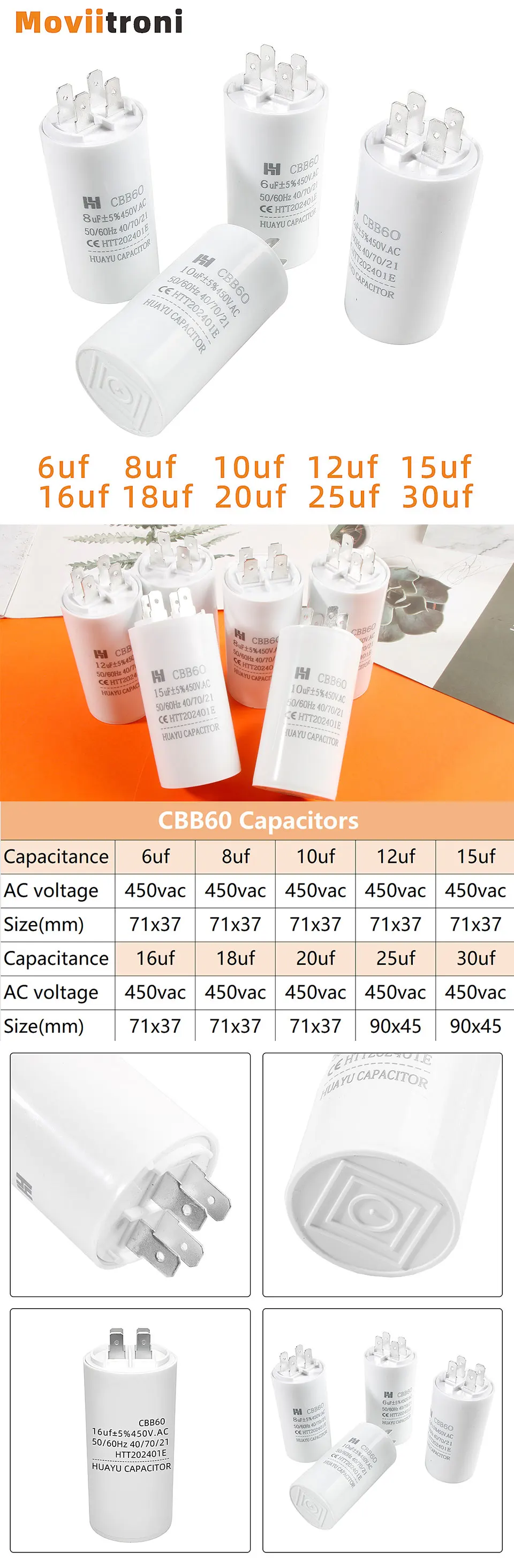 Capacidad nominal: 6uf,8uf,10uf,12uf,15uf,16uf,18uf,20uf,25uf,30uf