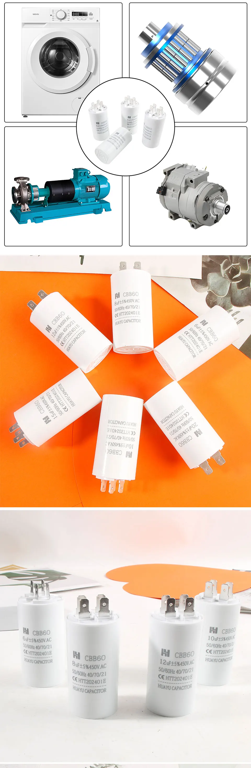 Amplia aplicación: ampliamente utilizado para compresores de aire, bombas de agua, lavadoras a presión, aires acondicionados, lavadoras, motores, generadores, HVAC, ventiladores, taladros, divisores, sierras, amoladoras, etc.