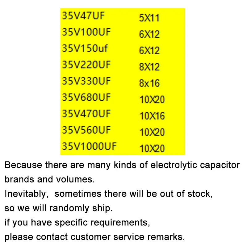 10UF 22UF 33UF 47UF 82UF 100UF 220UF 330UF 470UF 680UF 1000UF 2200UF 3300UF 4700UF