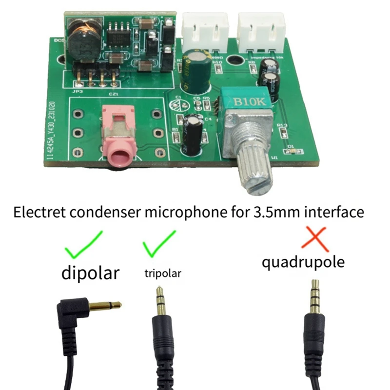 El voltaje de polarización incorporado de la interfaz de 3,5mm es adecuado para la amplificación de micrófono de condensador Electret y otros, con una ganancia de 26,4 dB;