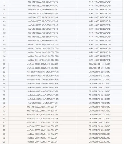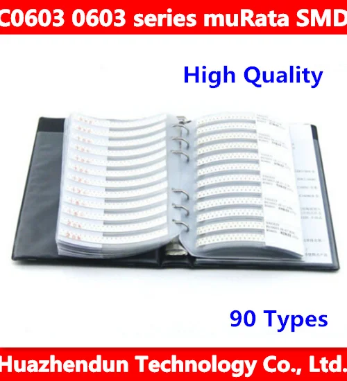 Comprar Condensador muRata SMD C0603 serie 0603 de alta calidad, 90 tipos, 4500 piezas, tolerancia Total del 5%, libro de muestras de componentes electrónicos
