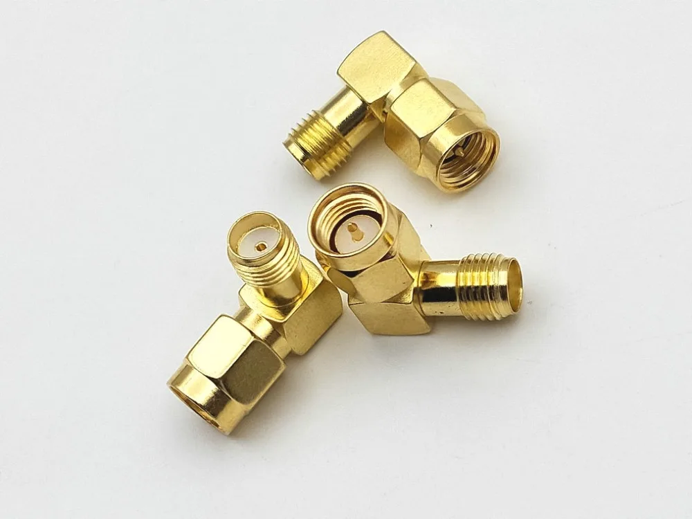 SMA macho a SMA hembra ángulo recto en serie conector coaxial RF