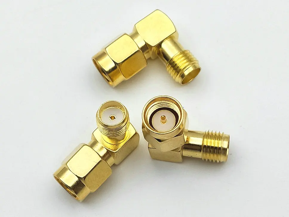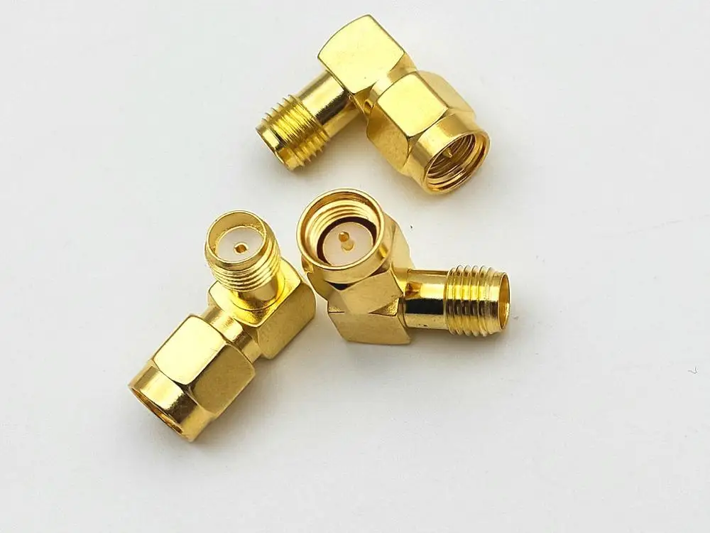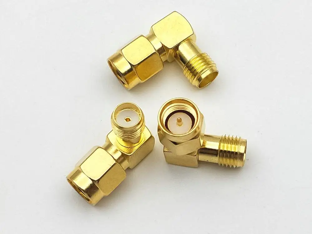 Comprar Conector de 100 piezas de oro SMA macho a SMA hembra de ángulo recto en serie, conector RF, nuevo