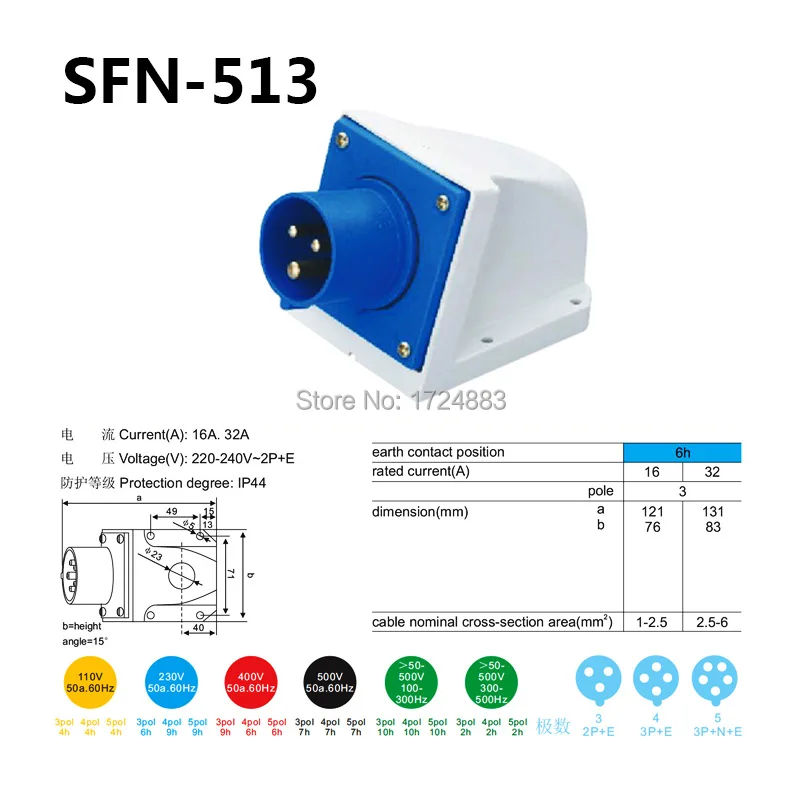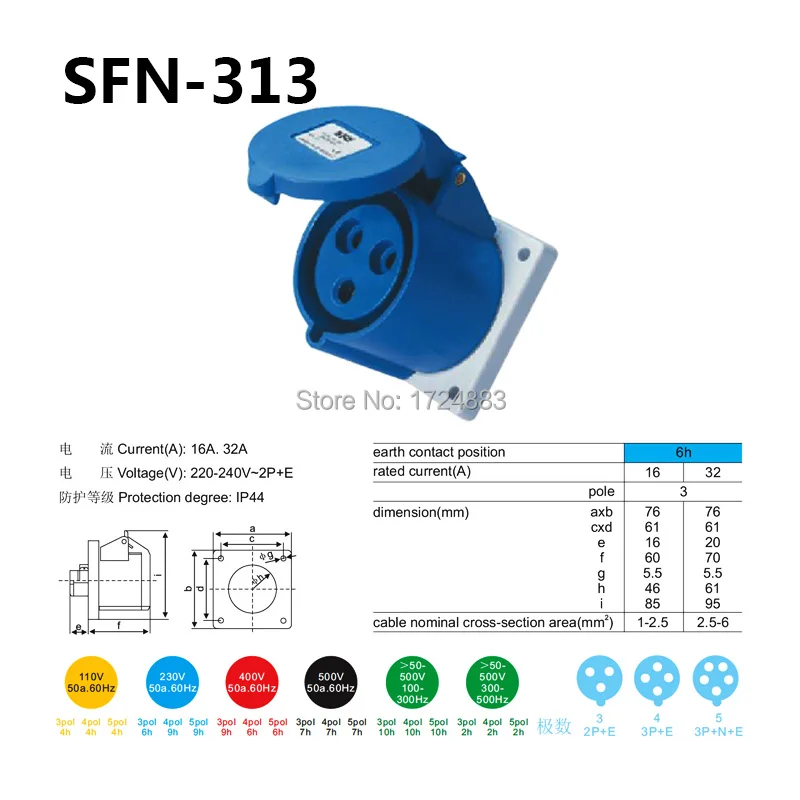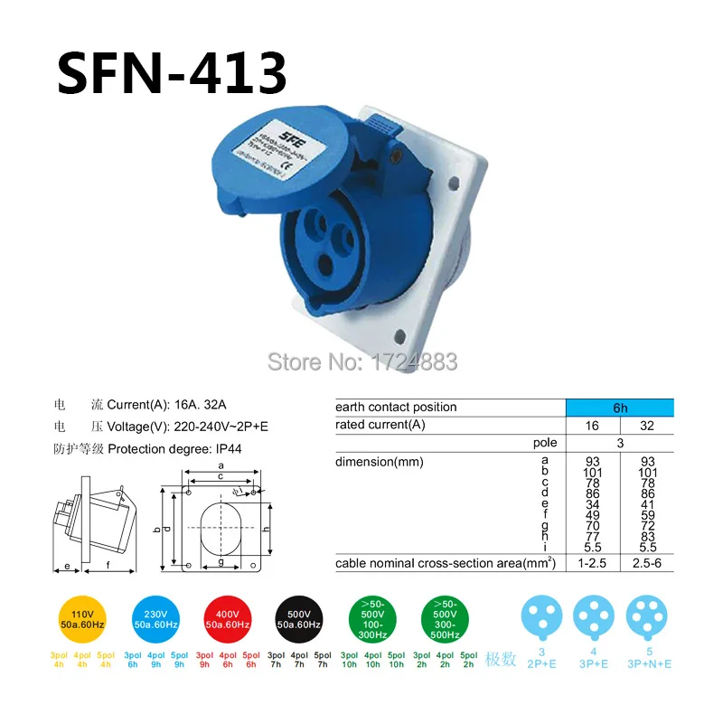 Comprar Conector de 3 polos 16A enchufes industriales macho y hembra SFN-113/SFN-313/SFN-413/SFN-513/SFN-613 impermeable IP44 220-240V ~ 2P + E