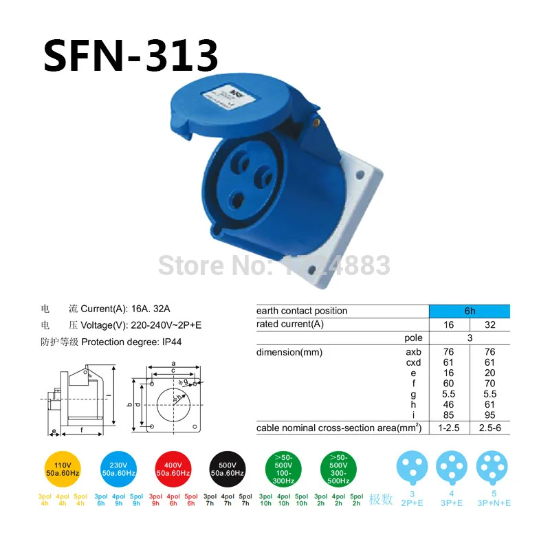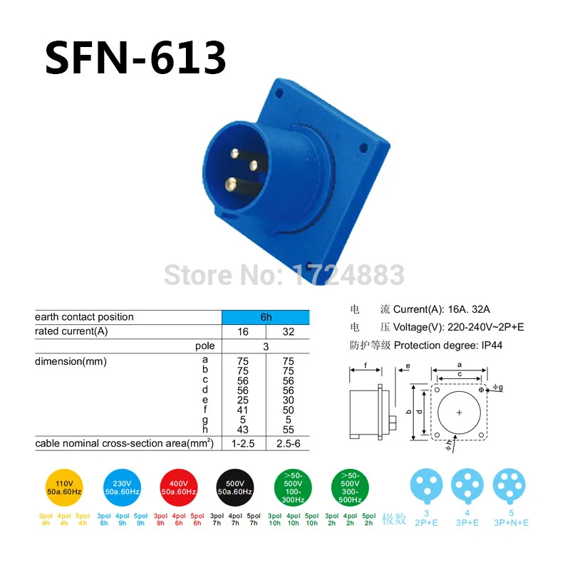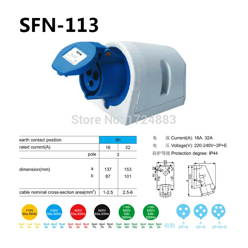 Comprar Conector de 3 polos 16A enchufes industriales macho y hembra SFN-113/SFN-313/SFN-413/SFN-513/SFN-613 impermeable IP44 220-240V ~ 2P + E