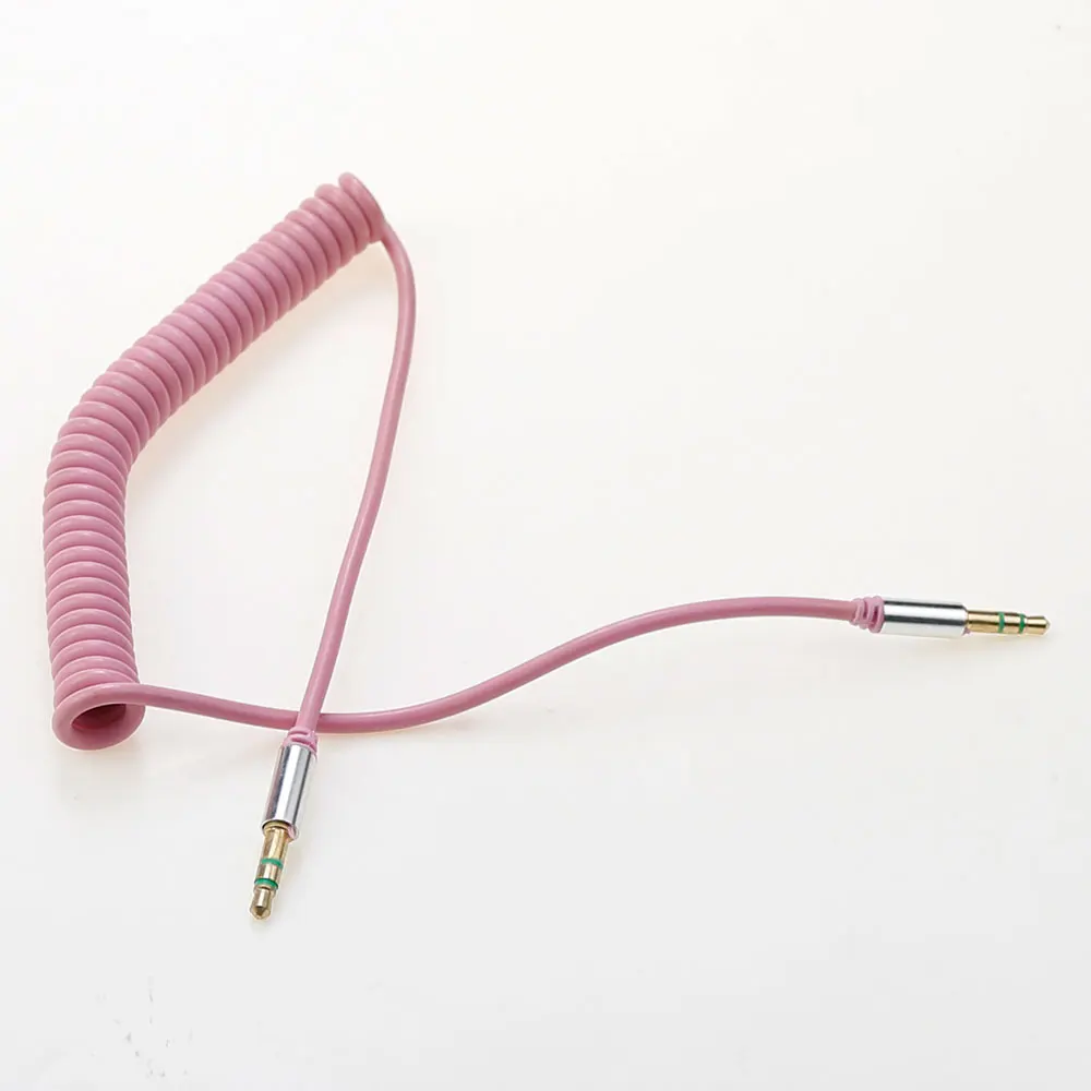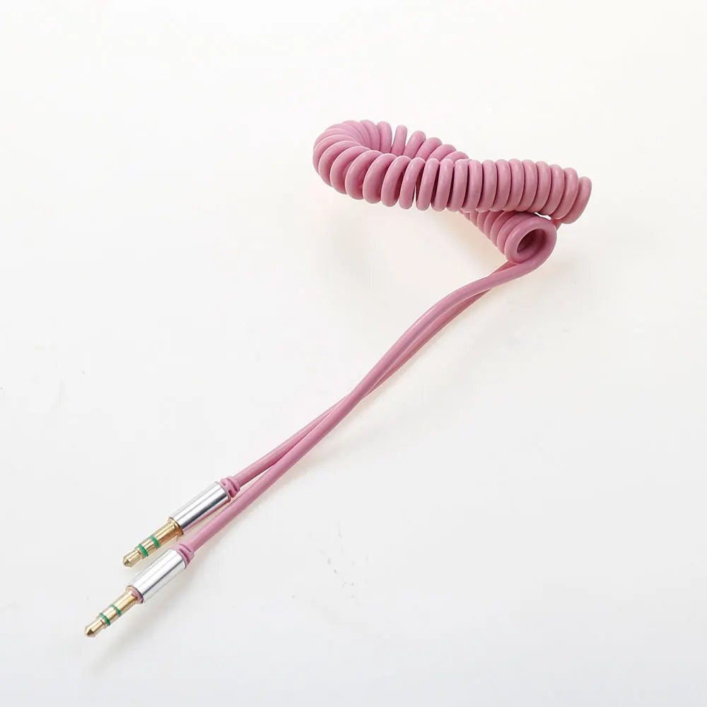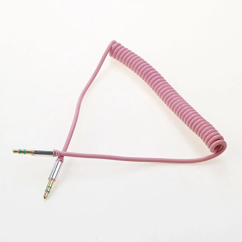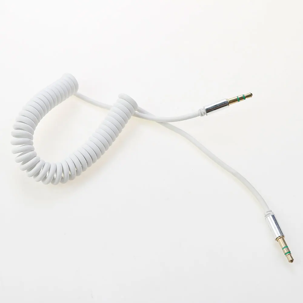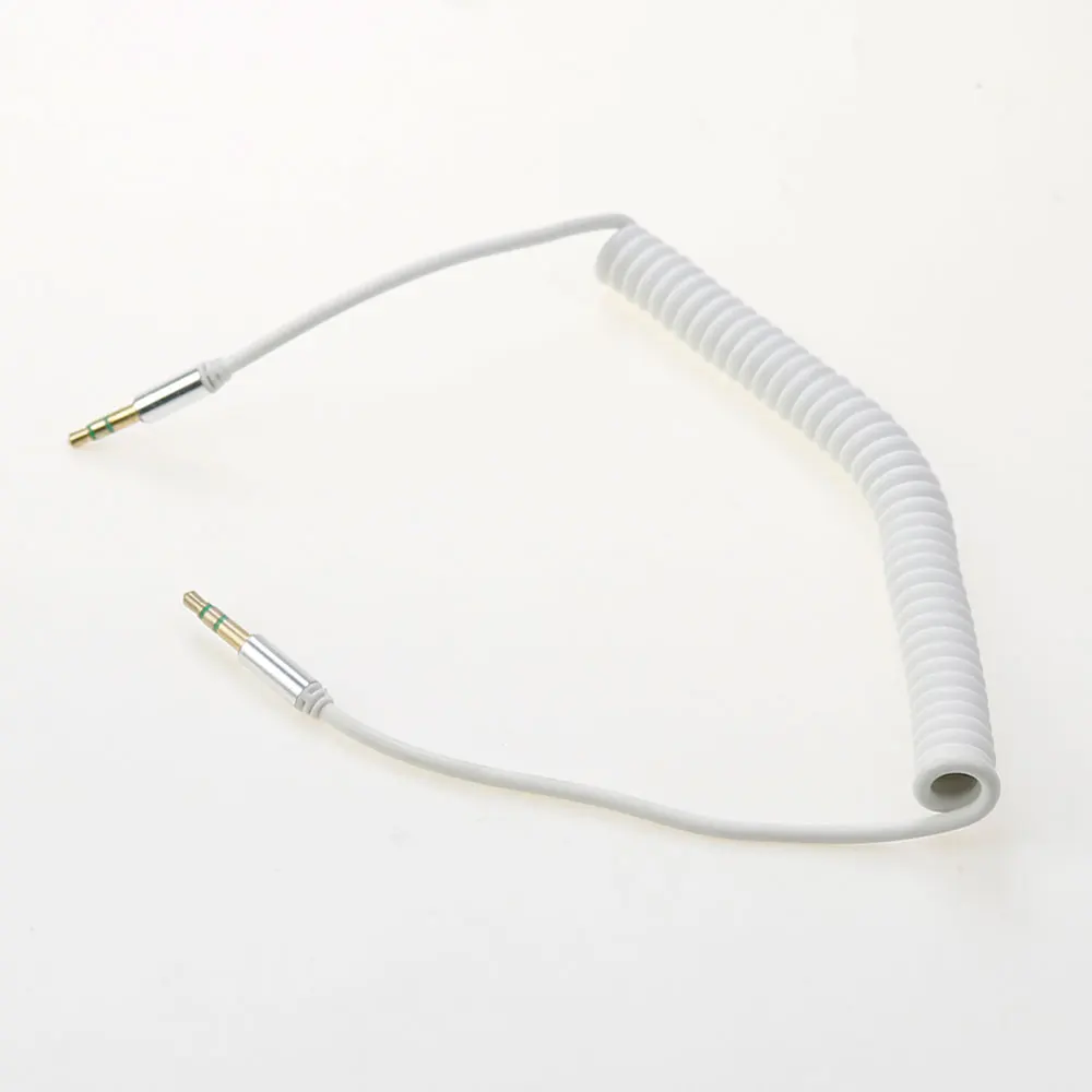 Conector macho a macho de 3,5mm, auriculares de doble canal de 3 secciones, Audio estéreo AUX, Cable en espiral con resorte