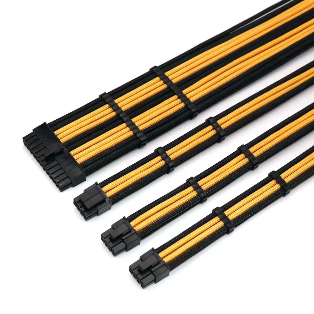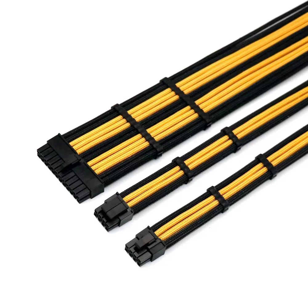Personalización 4mm PET manga Kit de extensión 24Pin ATX 2PCs CPU 8Pin EPS 4 + 4Pin 3PCs GPU 8Pin 6 + 2Pin PCI-E Cable de extensión de alimentación 4,2mm 5557 macho a hembra conector 6Pin Pci-e