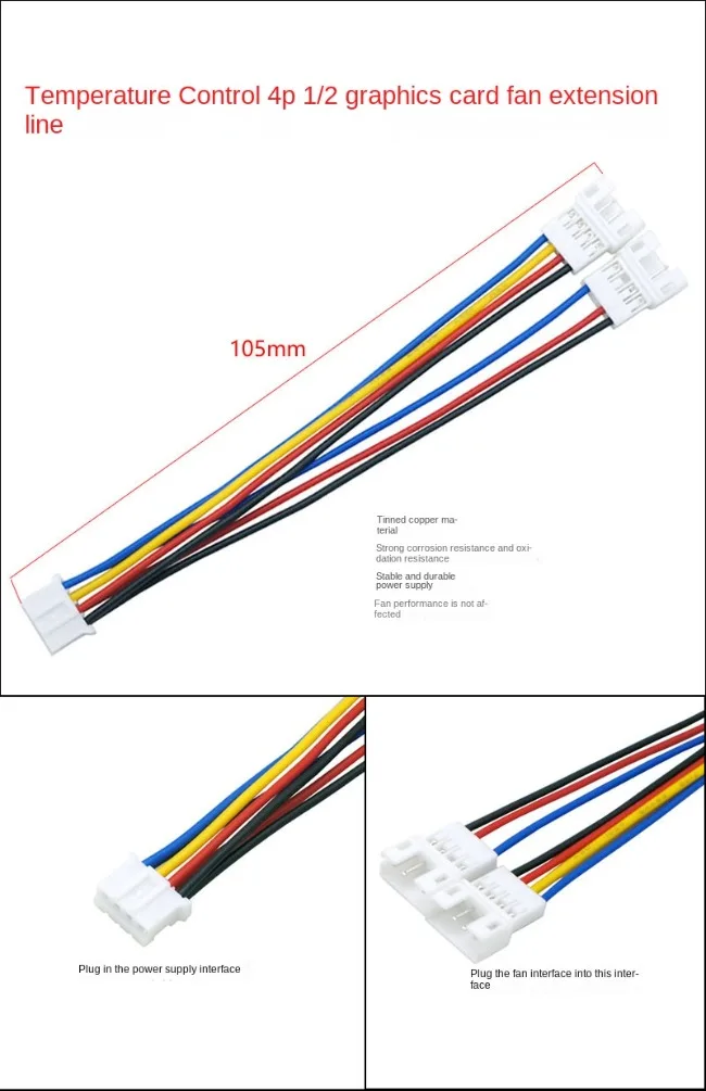 【 Nombre del producto 】: Control de temperatura PWM PH2.0 a cable de extensión del adaptador del ventilador de la tarjeta gráfica de 4 pines