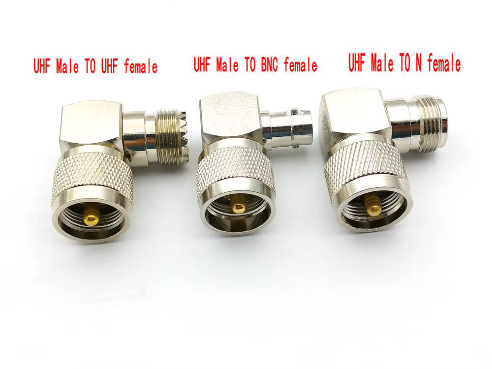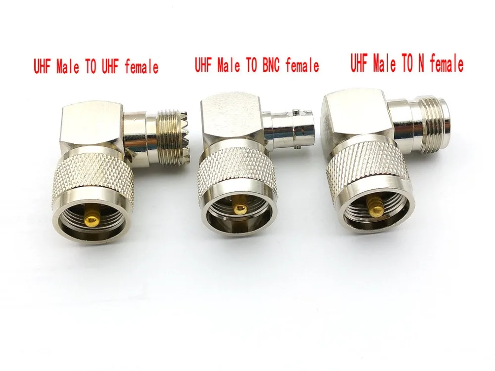 UHF macho a UHF hembra/BNC hembra/N hembra conector de adaptador de ángulo recto