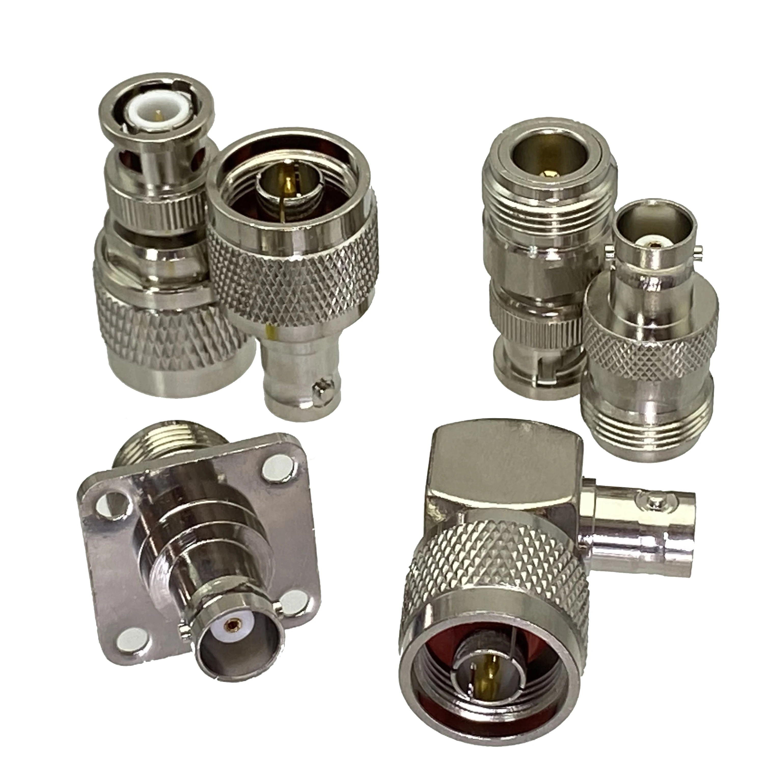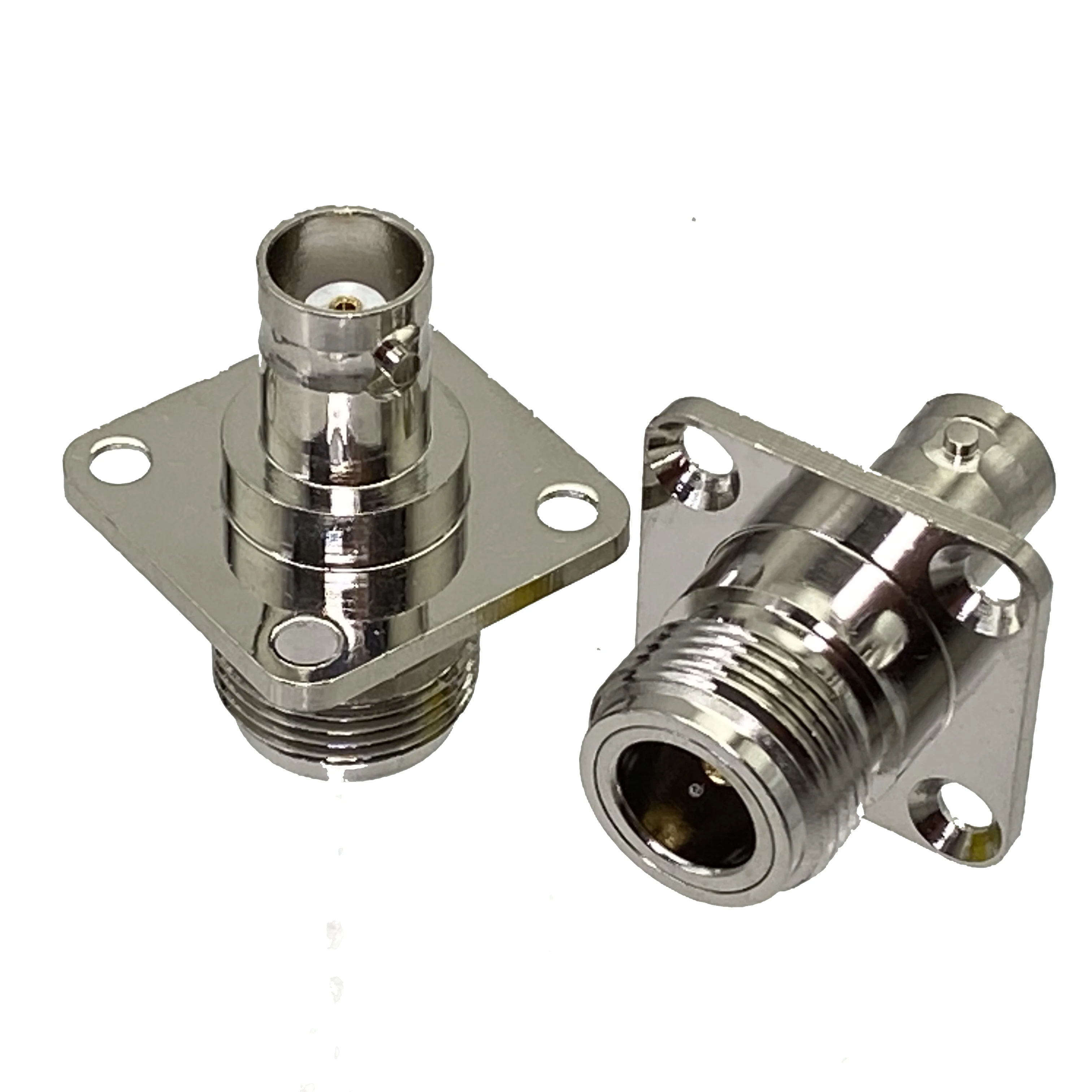 Conector hembra BNC a N macho, Conector recto y de ángulo recto y 4 agujeros, adaptador Coaxial RF con brida, convertidor de prueba de latón, 1