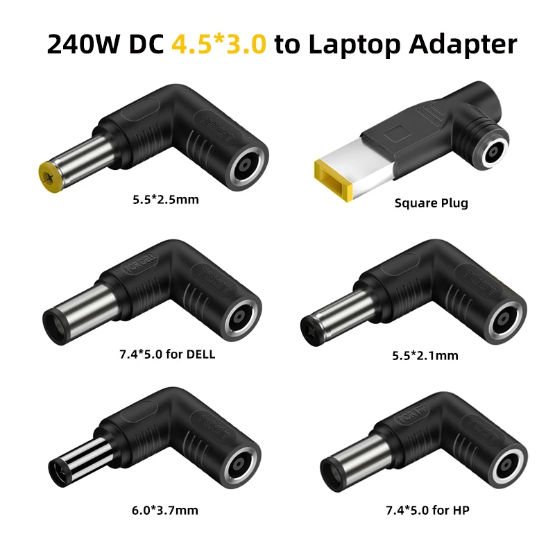 Conector adaptador de corriente para computadora portátil de 240 W Enchufe CC 4,5 * 3,0 a 7,4 * 5,0 Enchufe cuadrado 5,5 * 2,1 5,5 * 2,5 6,0 * 3,7 7,4 * 5,0 mm Conector hembra a macho