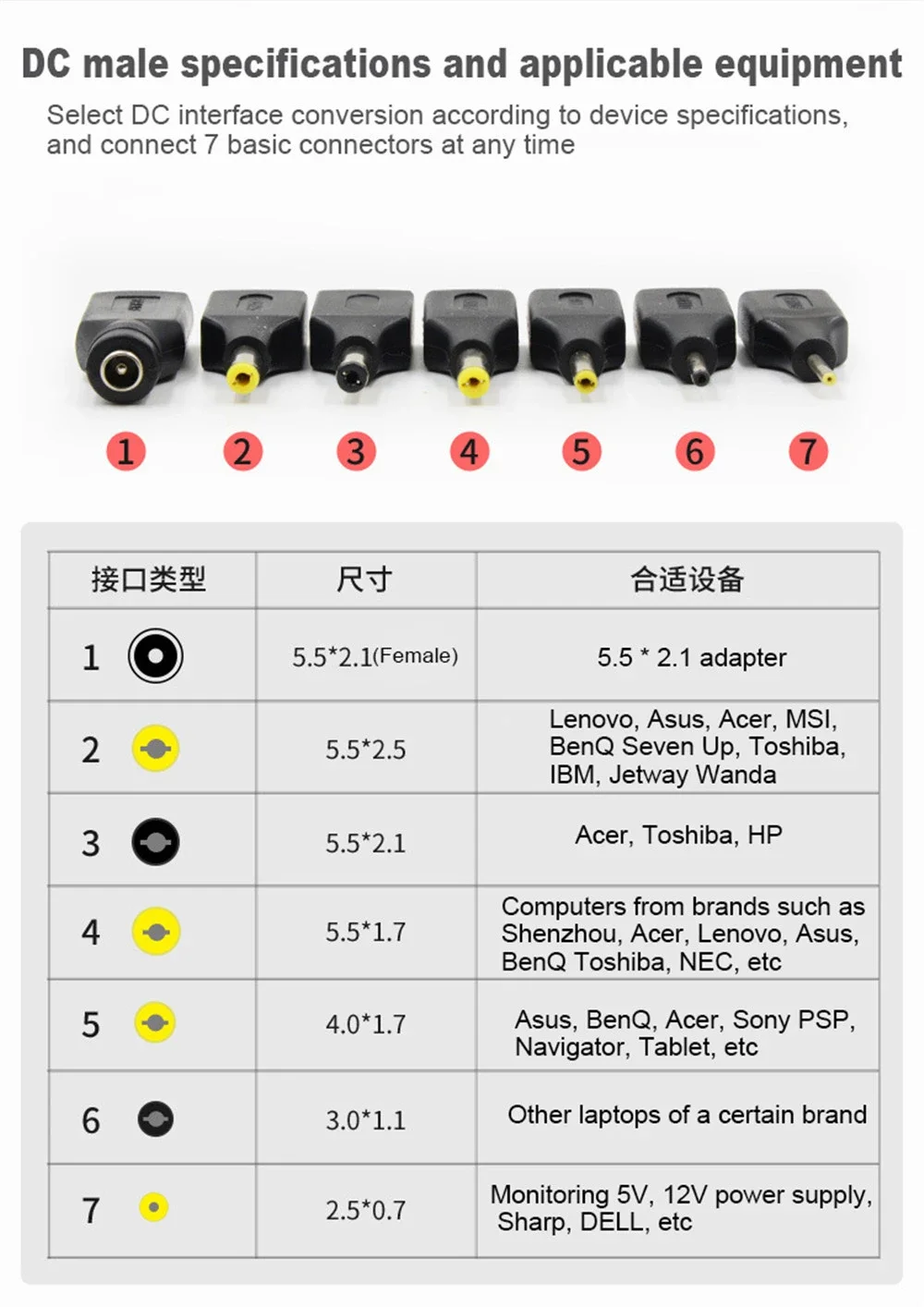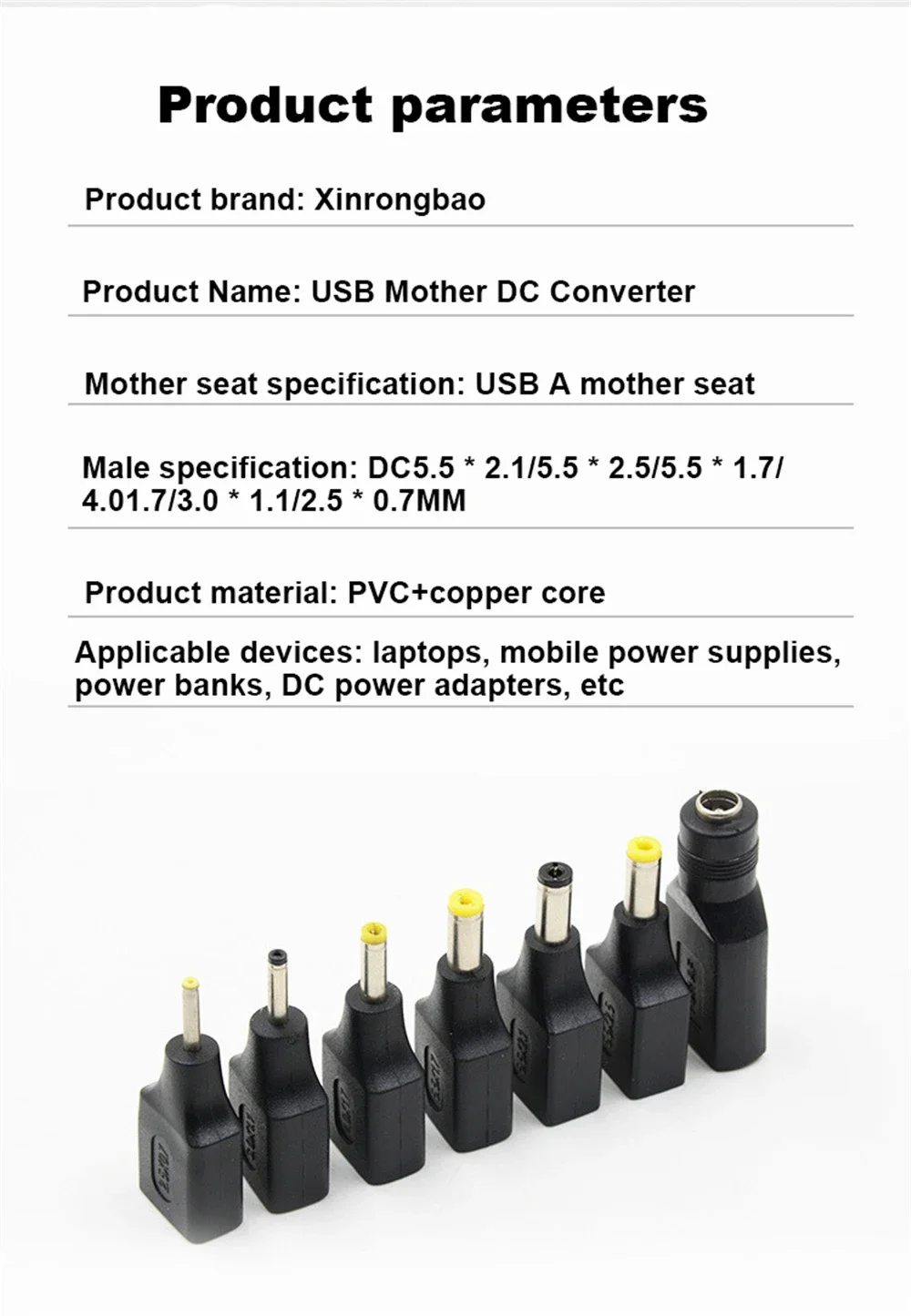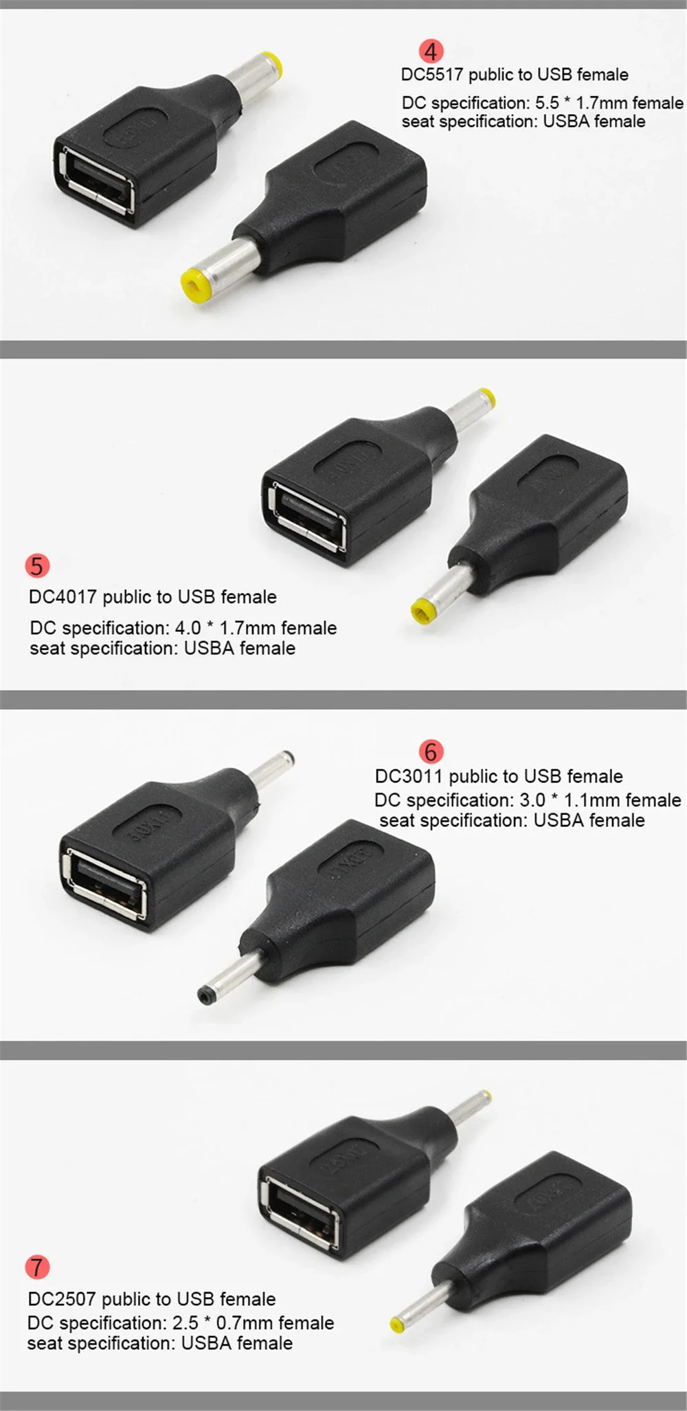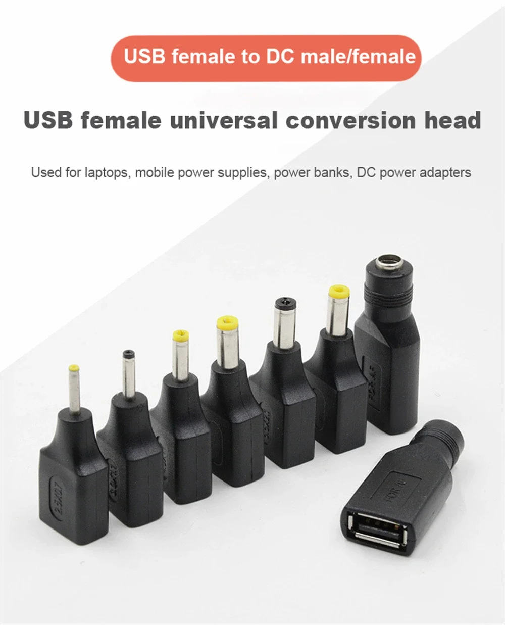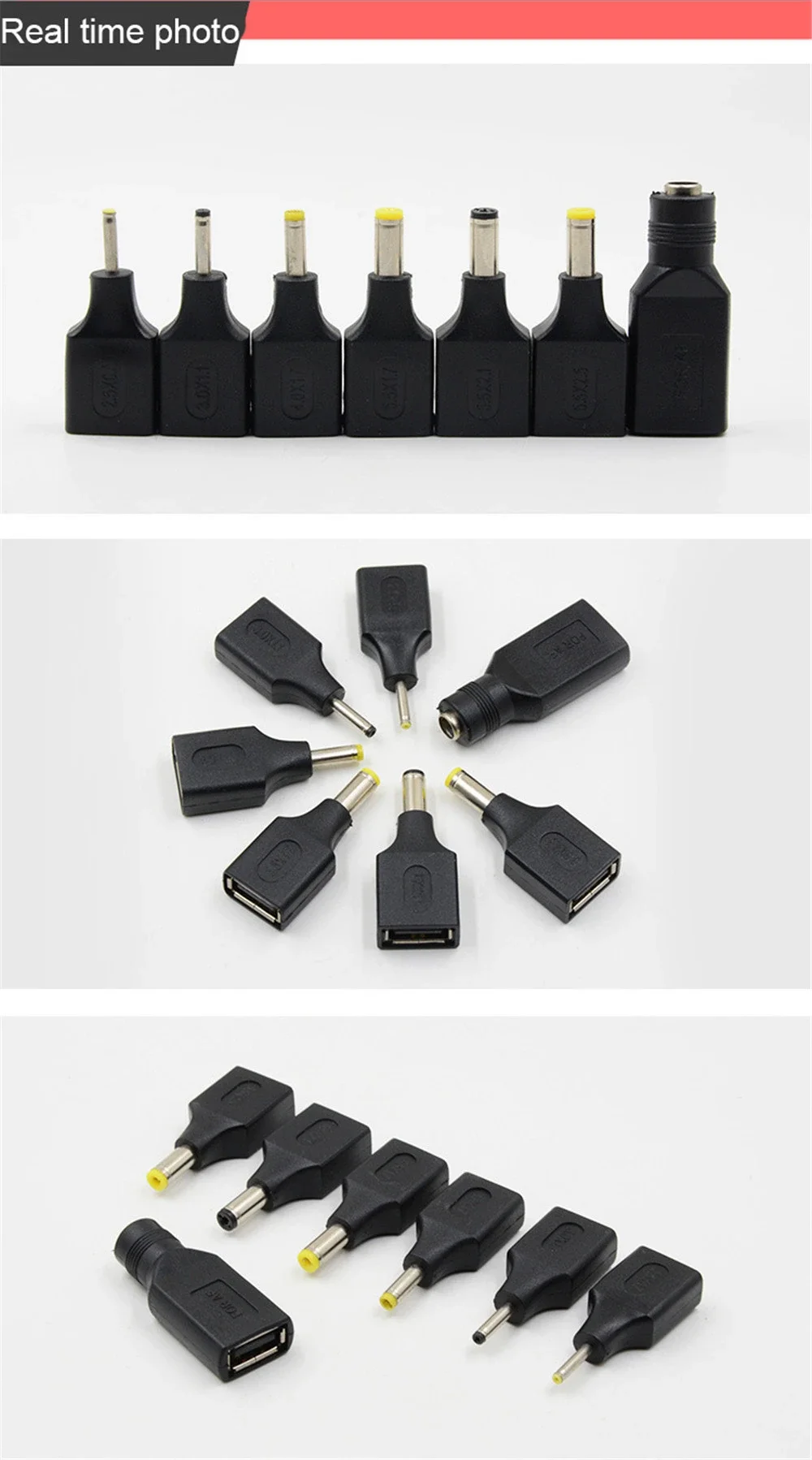 Conector adaptador de corriente para ordenador portátil, enchufe CC USB hembra a macho Universal DC25 * 07/30*11/55*25mm para carga de portátil Lenovo Asus