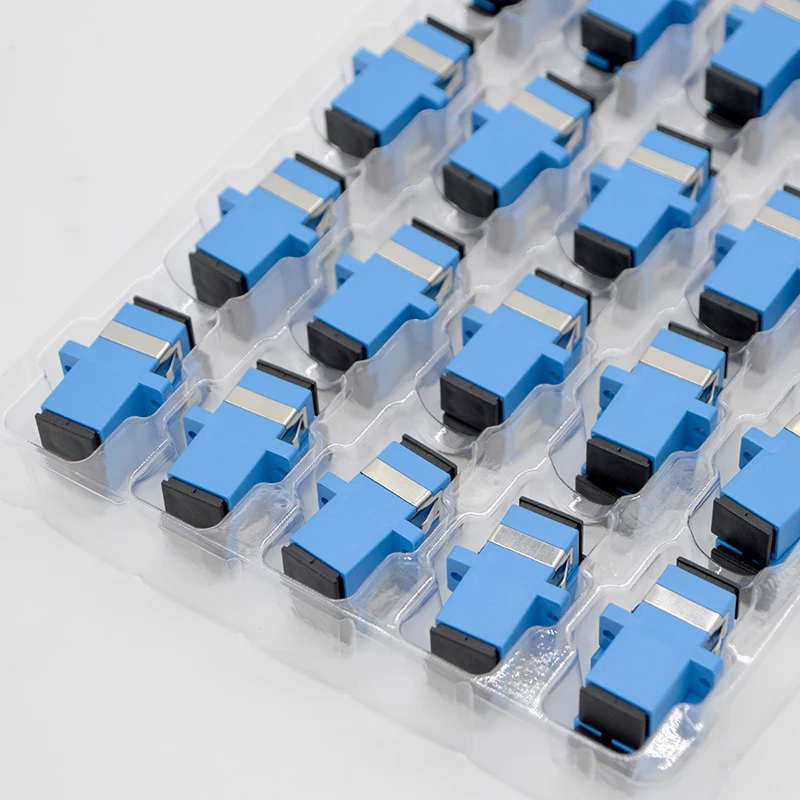 El adaptador de fibra óptica (también llamado brida) es el conector de fibra óptica para conectar piezas. Incluyendo FC, SC, ST, LC, son ampliamente utilizados en equipos de comunicación de fibra óptica de marco de distribución óptica, instrumentación, rendimiento estable y confiable.