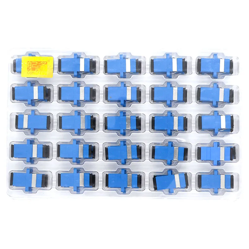 El adaptador de fibra óptica (también llamado brida) es el conector de fibra óptica para conectar piezas. Incluyendo FC, SC, ST, LC, son ampliamente utilizados en equipos de comunicación de fibra óptica de marco de distribución óptica, instrumentación, rendimiento estable y confiable.